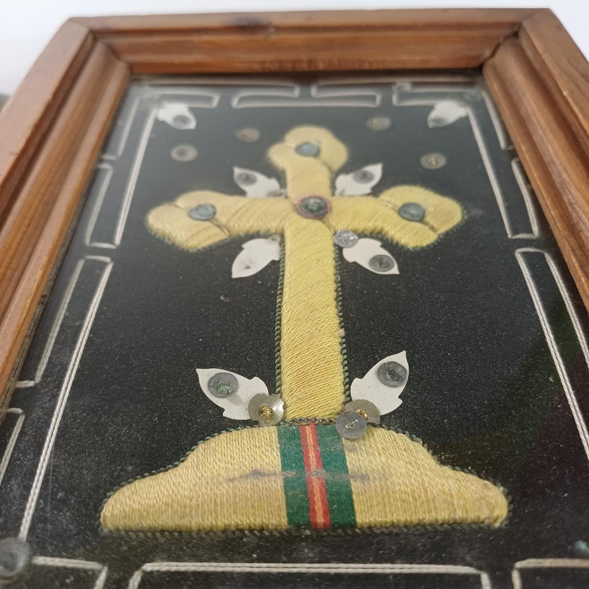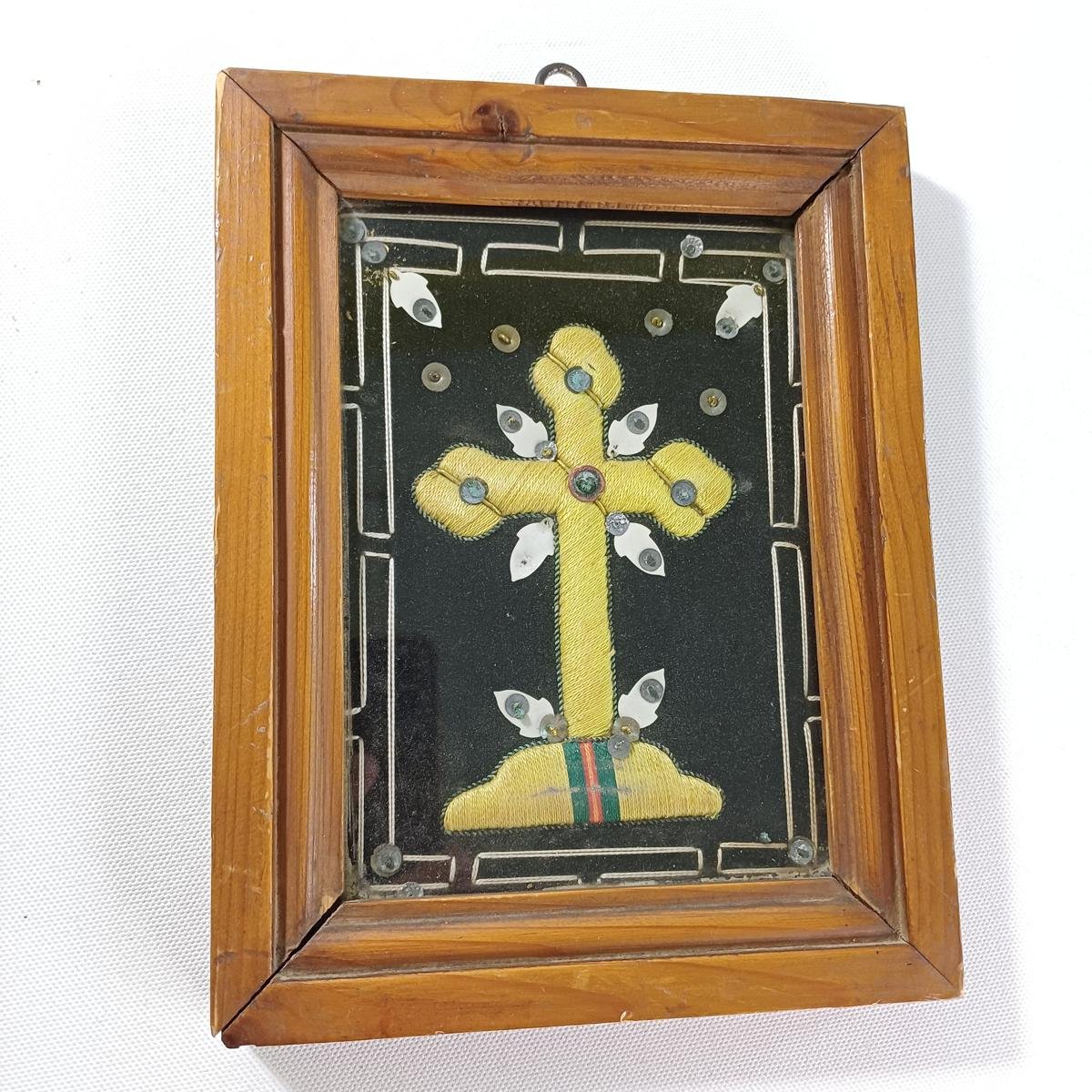 Χειροποίητα κεντήματα φουσκωτό “Σταυρός” Μικράς Ασίας (σε κορνίζα) (2 τεμ.)