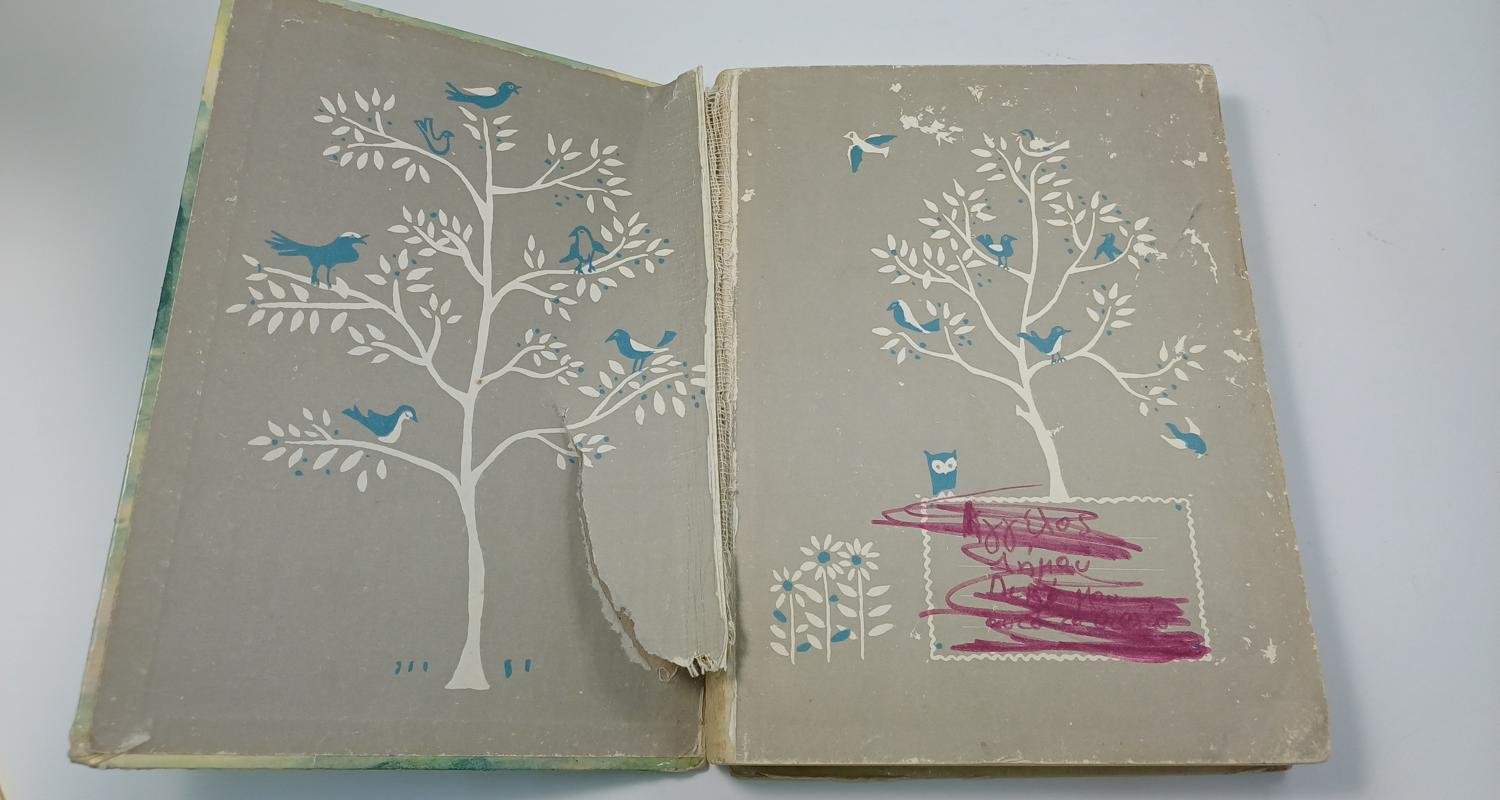Το βιβλίο είναι μεταχειρισμένο με φθορές λόγω χρήσης και παλαιότητας. Έχει ξεκολλημένη ράχη και σκίσιμο στην εισαγωγική σελίδα.
