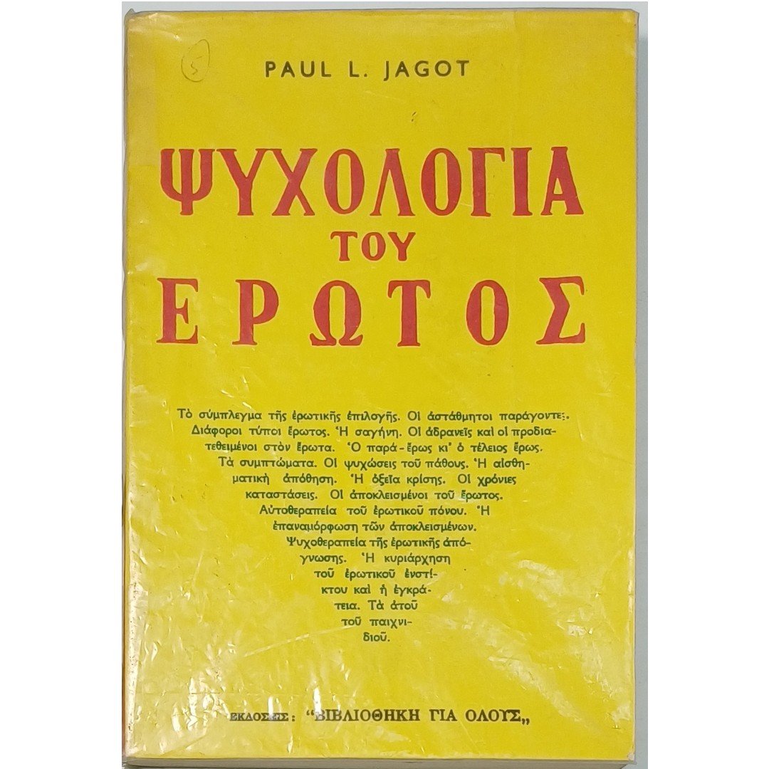 Το βιβλίο «Ψυχολογία του έρωτος» του Paul L. Jagot, αποτελεί μια μελέτη των ψυχοσυναισθηματικών καταστάσεων που συνδέονται με τον έρωτα. Το έργο αναλύει τη διαδικασία με την οποία ένα άτομο ερωτεύεται, τους διάφορους τύπους έρωτα (όπως ο «παρά-έρως» κι ο «τέλειος έρως»), τα συμπτώματά του, καθώς και τις συνθήκες διάρκειας και διάλυσής του, προσφέροντας γνώσεις για την αυτοθεραπεία του ερωτικού πόνου και την ψυχοθεραπεία της απόγνωσης. Ο Jagot υποστηρίζει ότι ο κάθε άνθρωπος βιώνει τον έρωτα με μοναδικό τρόπο, ανάλογα με τα ένστικτα, την ευαισθησία και την πνευματική του καλλιέργεια, και ότι ο ίδιος άνθρωπος δεν ερωτεύεται ποτέ δύο φορές με τον ίδιο τρόπο.
