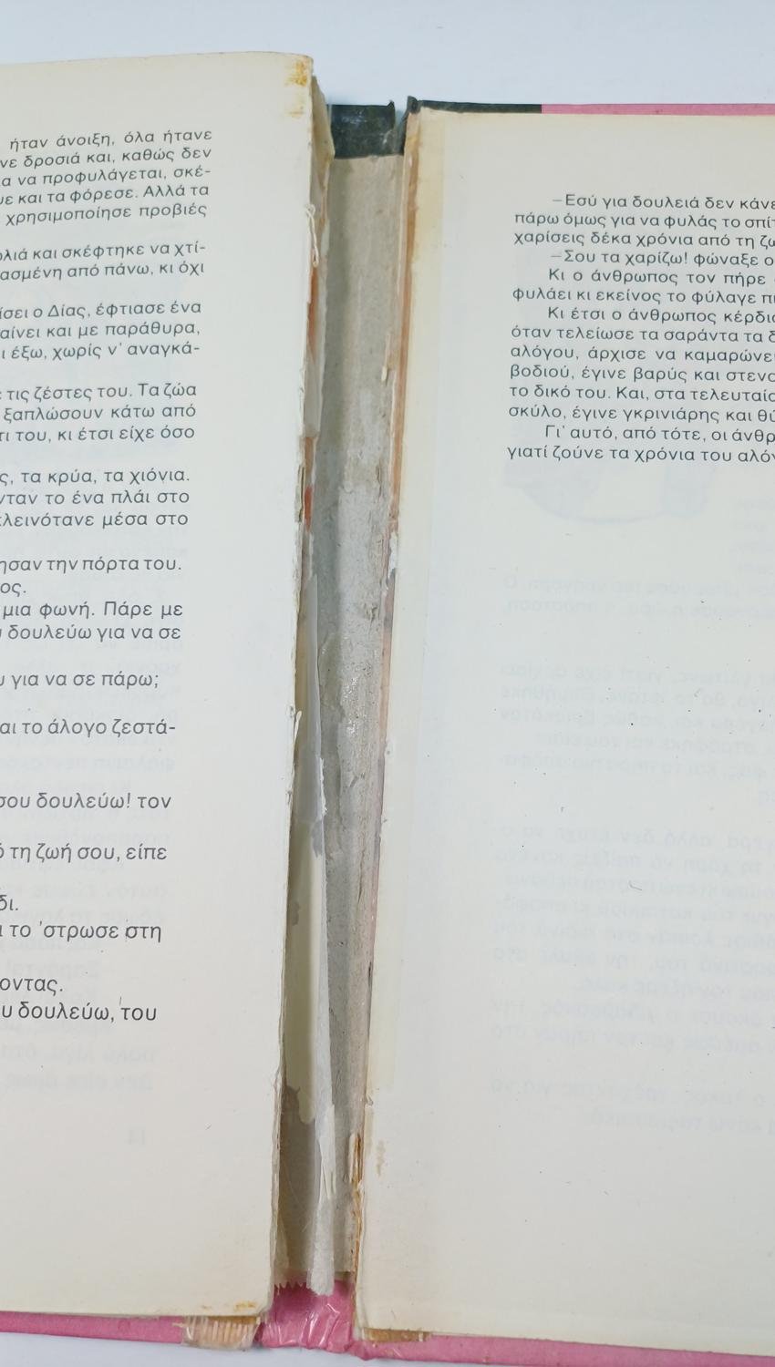 Το βιβλίο είναι μεταχειρισμένο με αρκετές φθορές (σημειώσεις και ζωγραφιές προηγούμενου ιδιοκτήτη και αποκόλληση ράχης).
