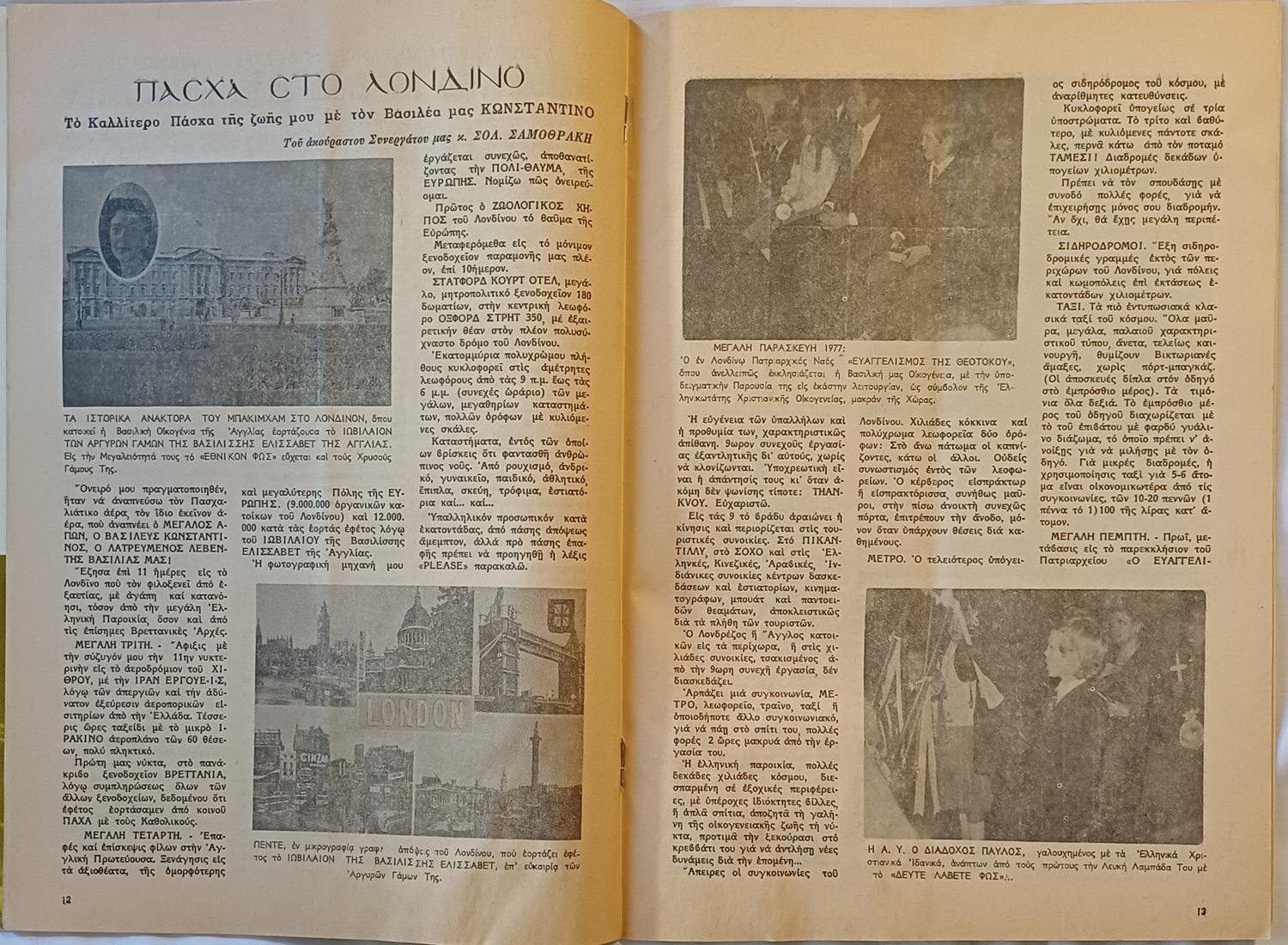Το περιοδικό “Εθνικόν Φως” (1977) με θέμα τον Βασιλιά Κωνσταντίνο, βασιλιά της Ελλάδας. Στο εξώφυλλο βρίσκεται ο Βασιλιάς, μαζί με την οικογένειά του, το Πάσχα. Το περιοδικό, με υπότιτλο «Πανελλήνιος Εθνική Επιθεώρησις – Όργανον των Απανταχού Βασιλοφρόνων», είναι πλούσιο με φωτογραφίες γύρω από την βασιλική οικογένεια.