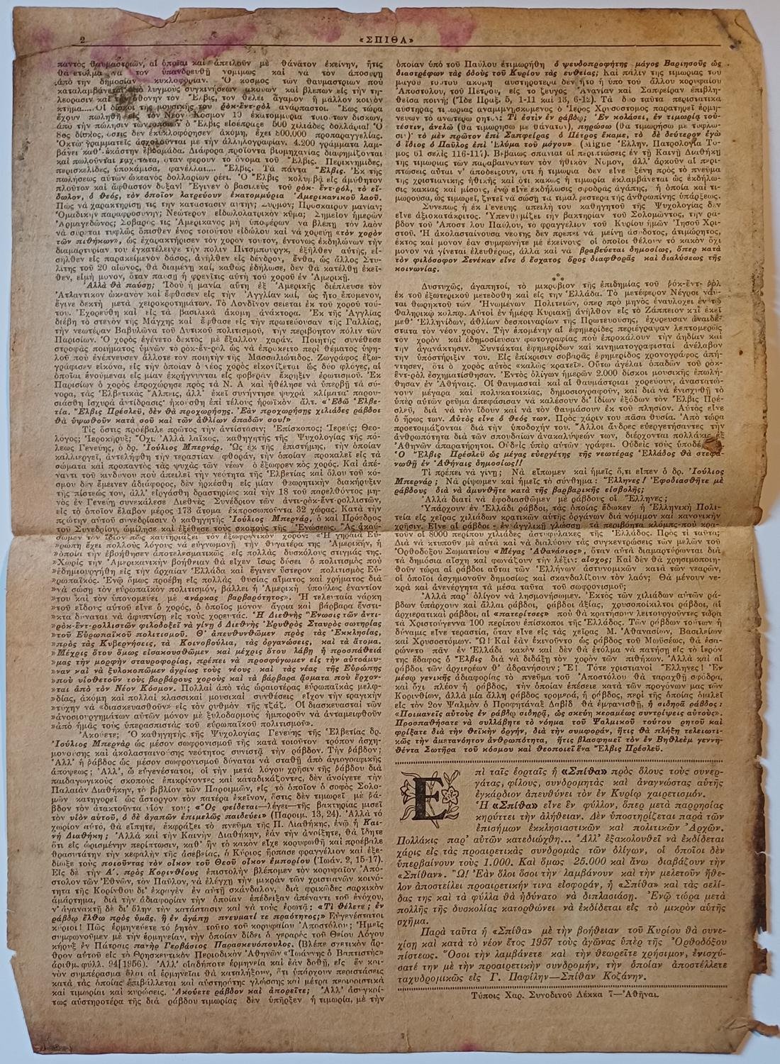 Εφημερίδα “ΧΡΙΣΤΙΑΝΙΚΗ ΣΠΙΘΑ” Αριθ. Φ. 189 – Δεκ. 1956