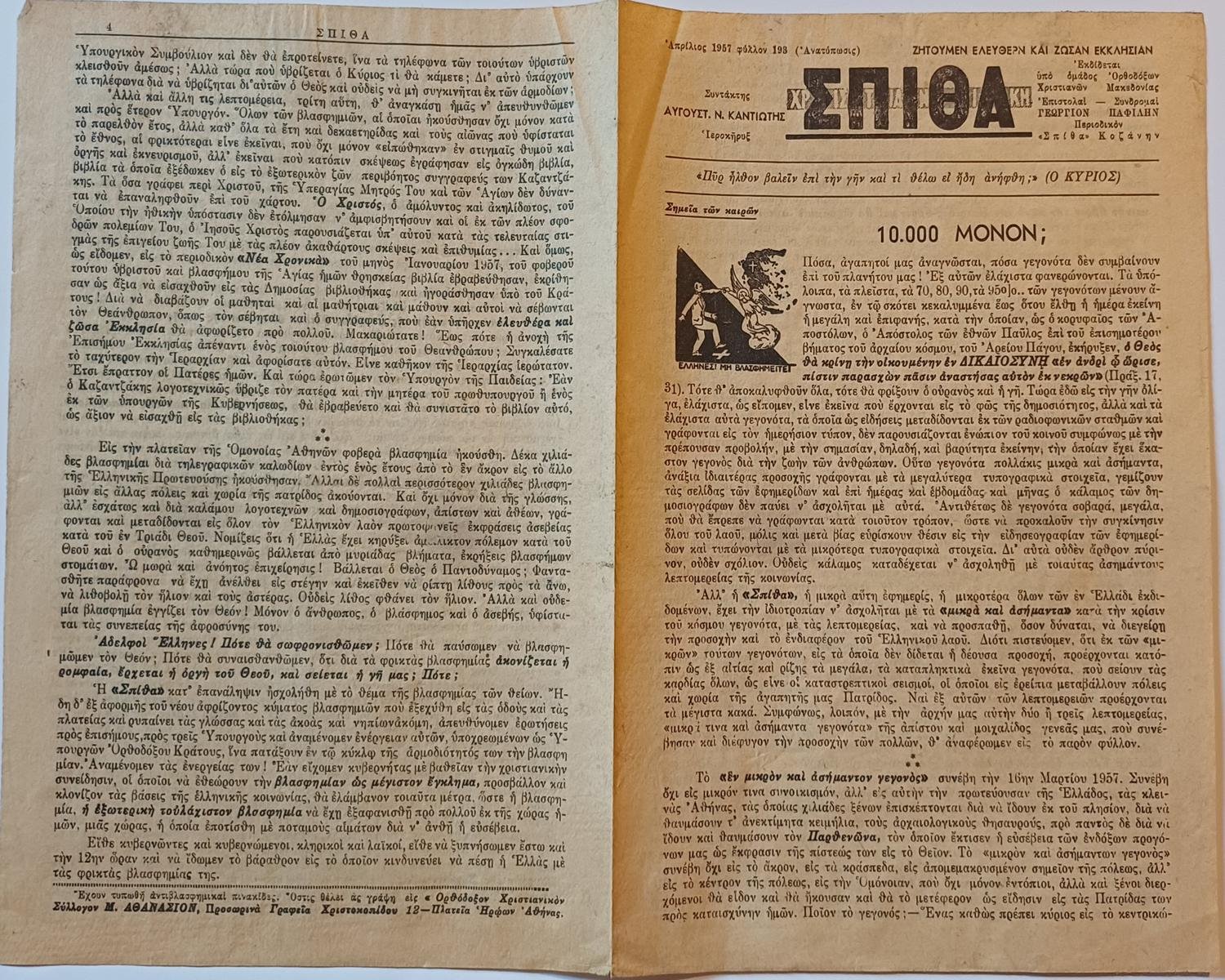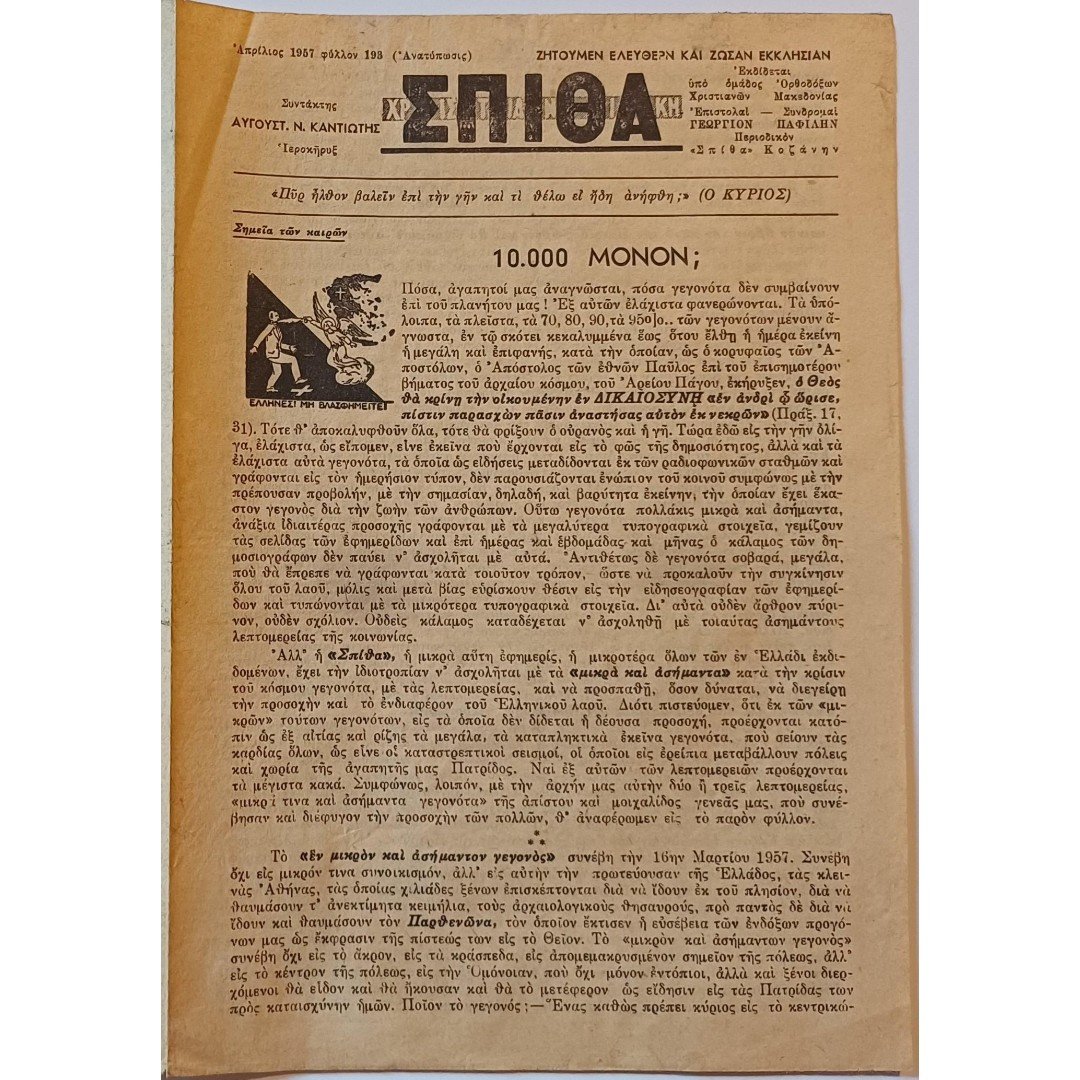 Εφημερίδα “ΧΡΙΣΤΙΑΝΙΚΗ ΣΠΙΘΑ” Αριθ. Φ 193 – Απρ. 1957 (Ανατύπωση)