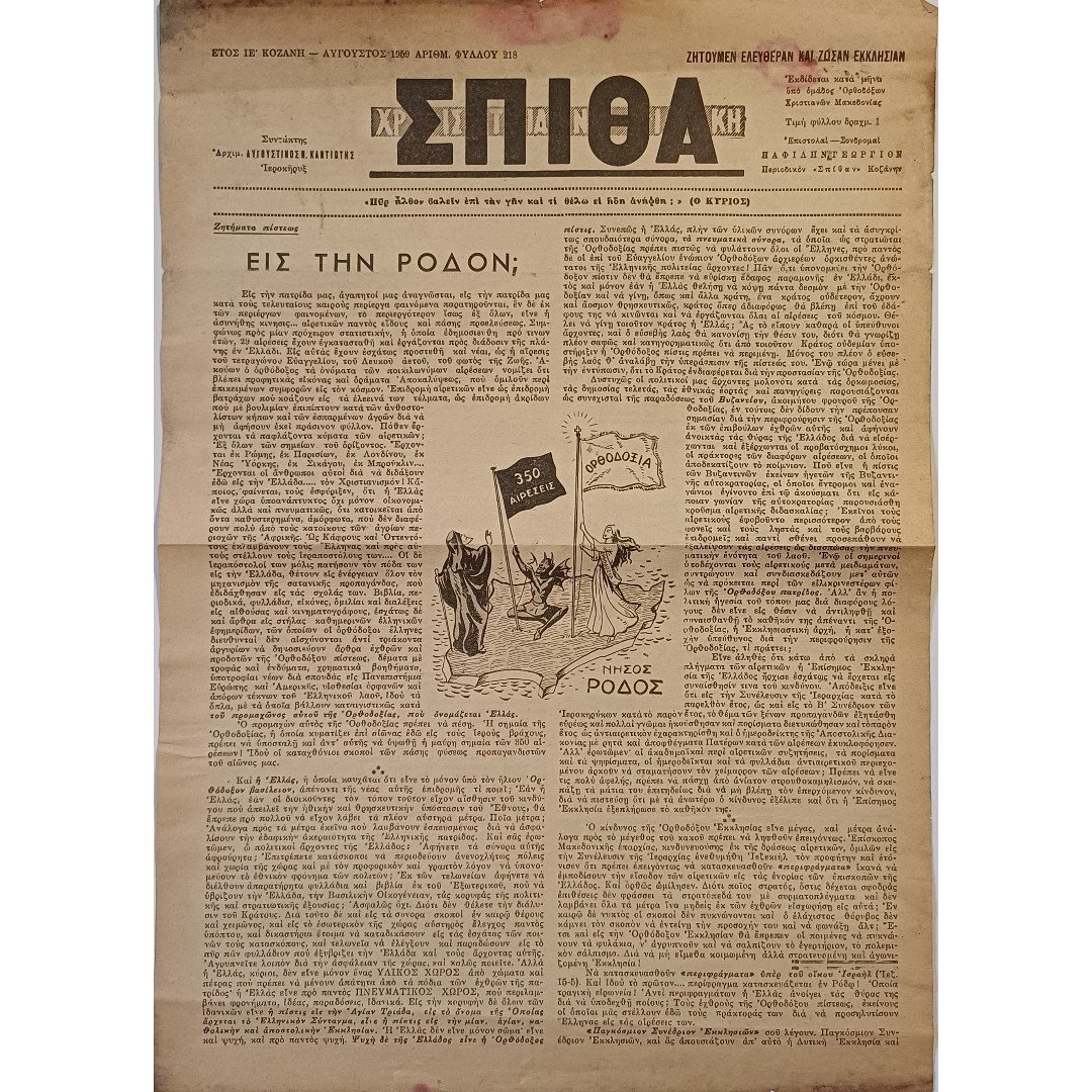 Εφημερίδα “ΧΡΙΣΤΙΑΝΙΚΗ ΣΠΙΘΑ”, Αριθ. Φ. 218, Αυγ. 1959