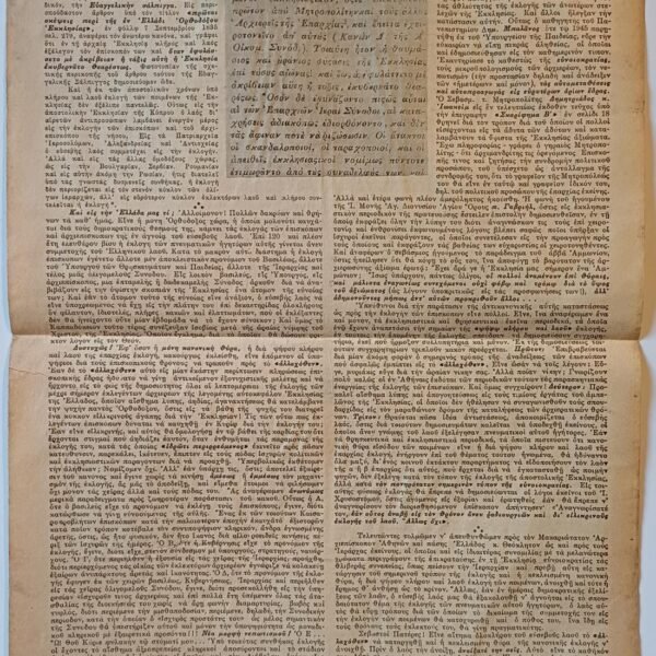 Η εφημερίδα είναι μεταχειρισμένη με φθορά λόγω χρήσης (σκίσιμο στο πρώτο φύλλο) και παλαιότητας (παρουσία υγρασίας).