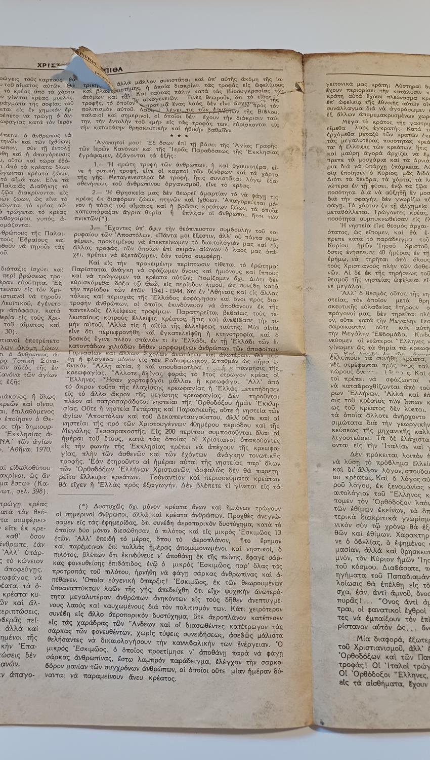 Το κύριο άρθρο φέρει τον τίτλο «ΟΝΟΦΑΓΟΙ», και αποτελεί μια δριμεία κοινωνική και θρησκευτική κριτική του Μητροπολίτη Αυγουστίνου Καντιώτη απέναντι στον σύγχρονο τρόπο ζωής και την απομάκρυνση από τις χριστιανικές παραδόσεις. Συνδέει την «πολυφαγία» και την «οινοποσία» με τη γενικότερη κρίση αξιών της ελληνικής κοινωνίας της δεκαετίας του ’70. Ο συντάκτης υποστηρίζει ότι όταν το σώμα κυριαρχεί επί του πνεύματος, ο άνθρωπος χάνει την ελευθερία του και την επαφή του με τον Θεό. Υπενθυμίζει στους αναγνώστες την αξία της εγκράτειας και της νηστείας.