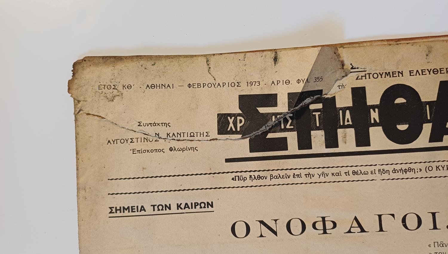 Εφημερίδα “ΧΡΙΣΤΙΑΝΙΚΗ ΣΠΙΘΑ”, Αριθ. Φ. 355, Φεβ. 1973