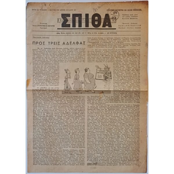 Η εφημερίδα είναι μεταχειρισμένη με ορισμένη φθορά λόγω χρήσης και παλαιότητας (παρουσία υγρασίας).