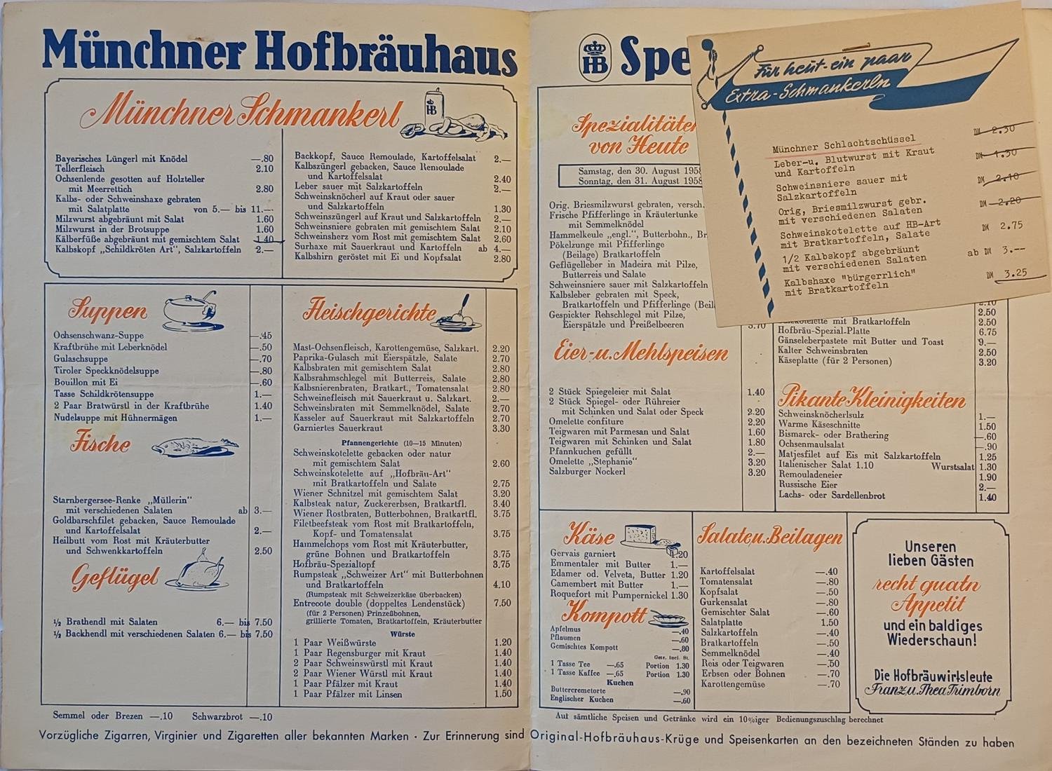 Πρόκειται για το μενού της διάσημης μπυραρίας “Hofbräuhaus am Platzl” του Μονάχου της Γερμανίας (δεκαετίες 1950-’60)
