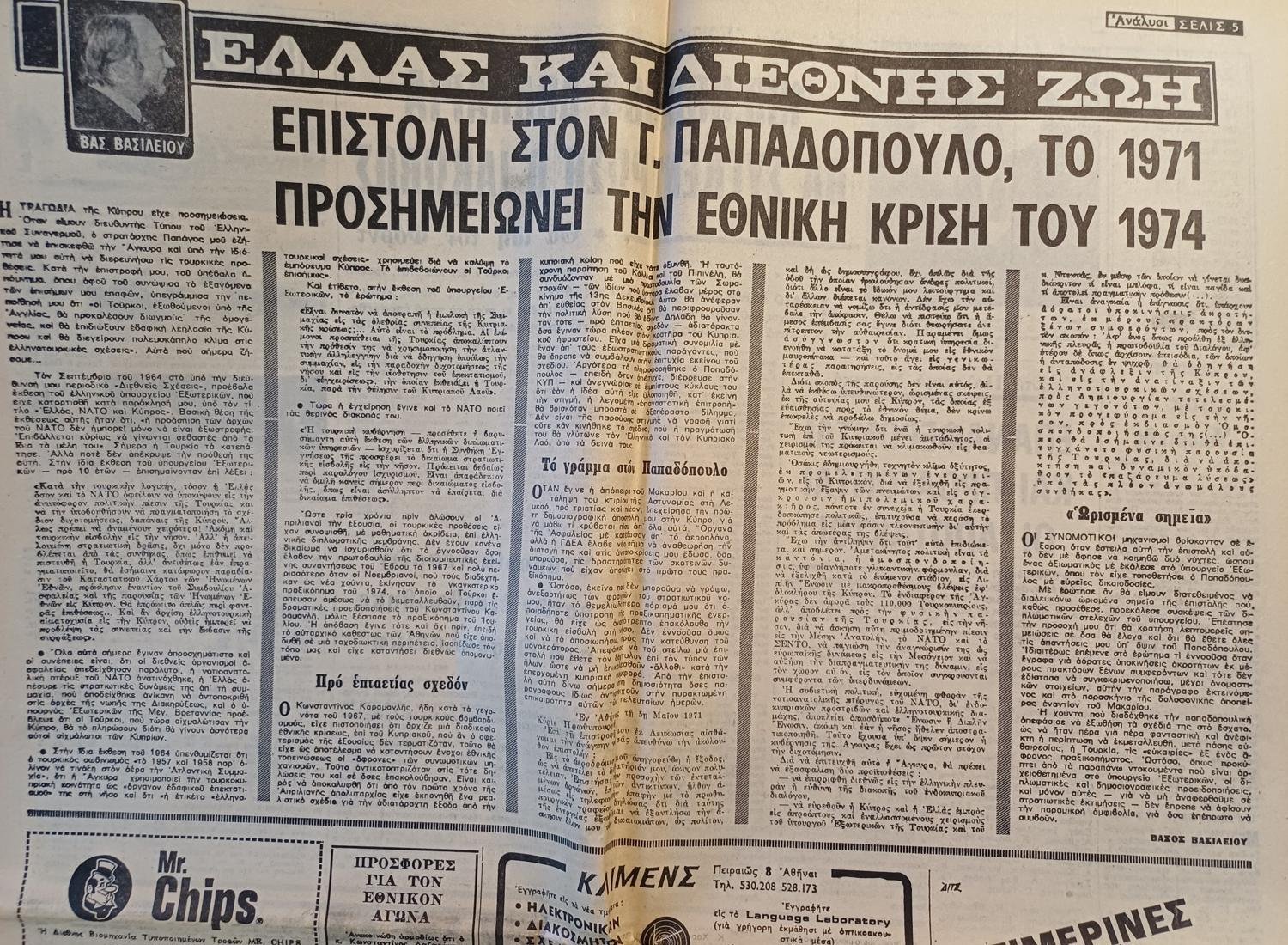 Εφημερίδα “Η ΒΡΑΔΥΝΗ” 19/12/1974
