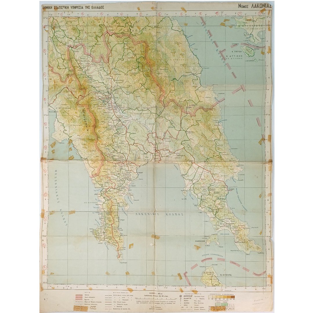 Χάρτης “Νομός Λακωνίας” από την Ε.Σ.Υ.Ε. (Έτος 1963, Αρ. αντιτύπου 715)