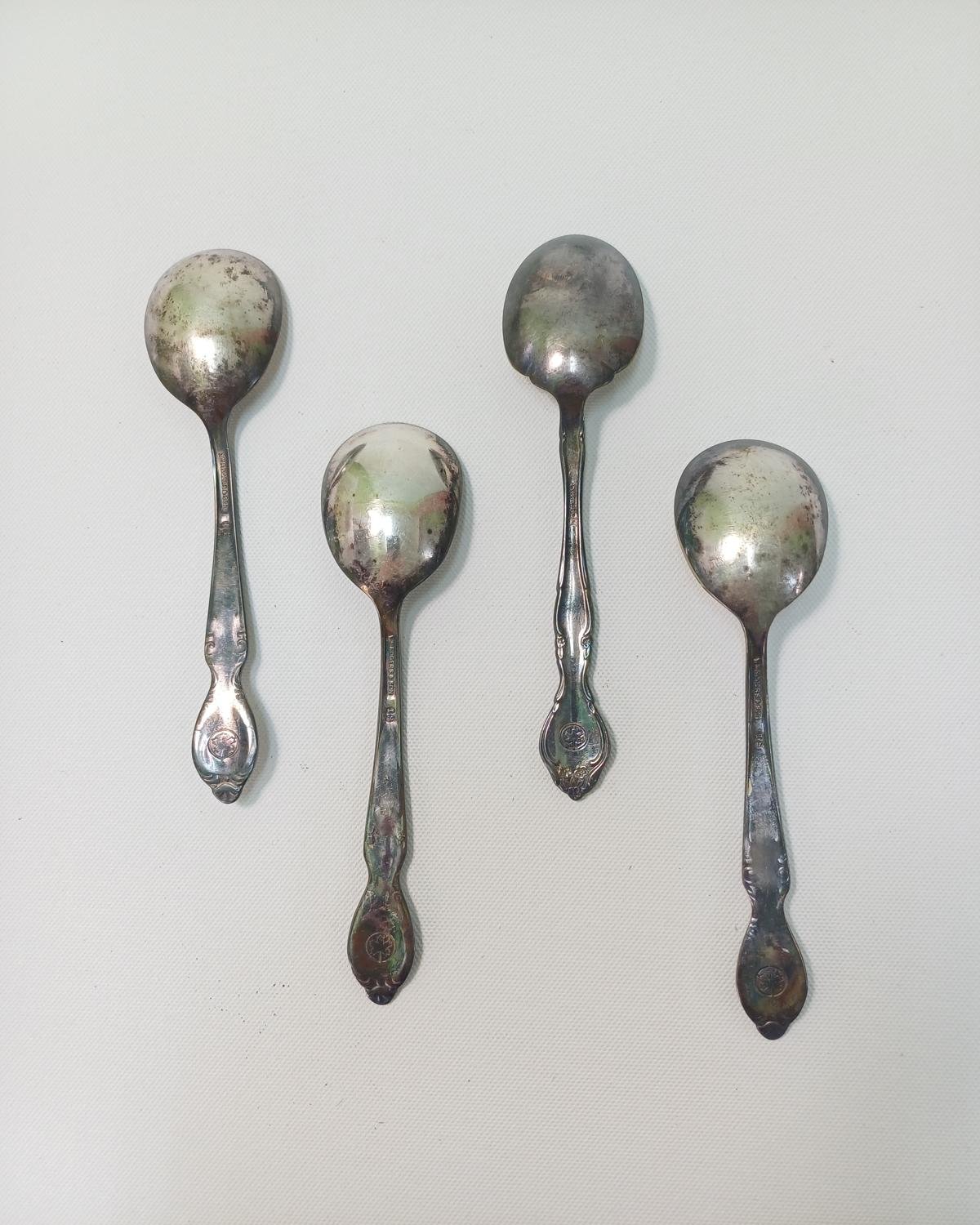 4 ασημένια κουταλάκια Rogers and Sons. Η εταιρεία αυτή ιδρύθηκε από τον William Rogers στο Χάρτφορντ του Κονέκτικατ το 1865. Αργότερα έγινε μέρος της International Silver Company (IS) μετά το 1898.