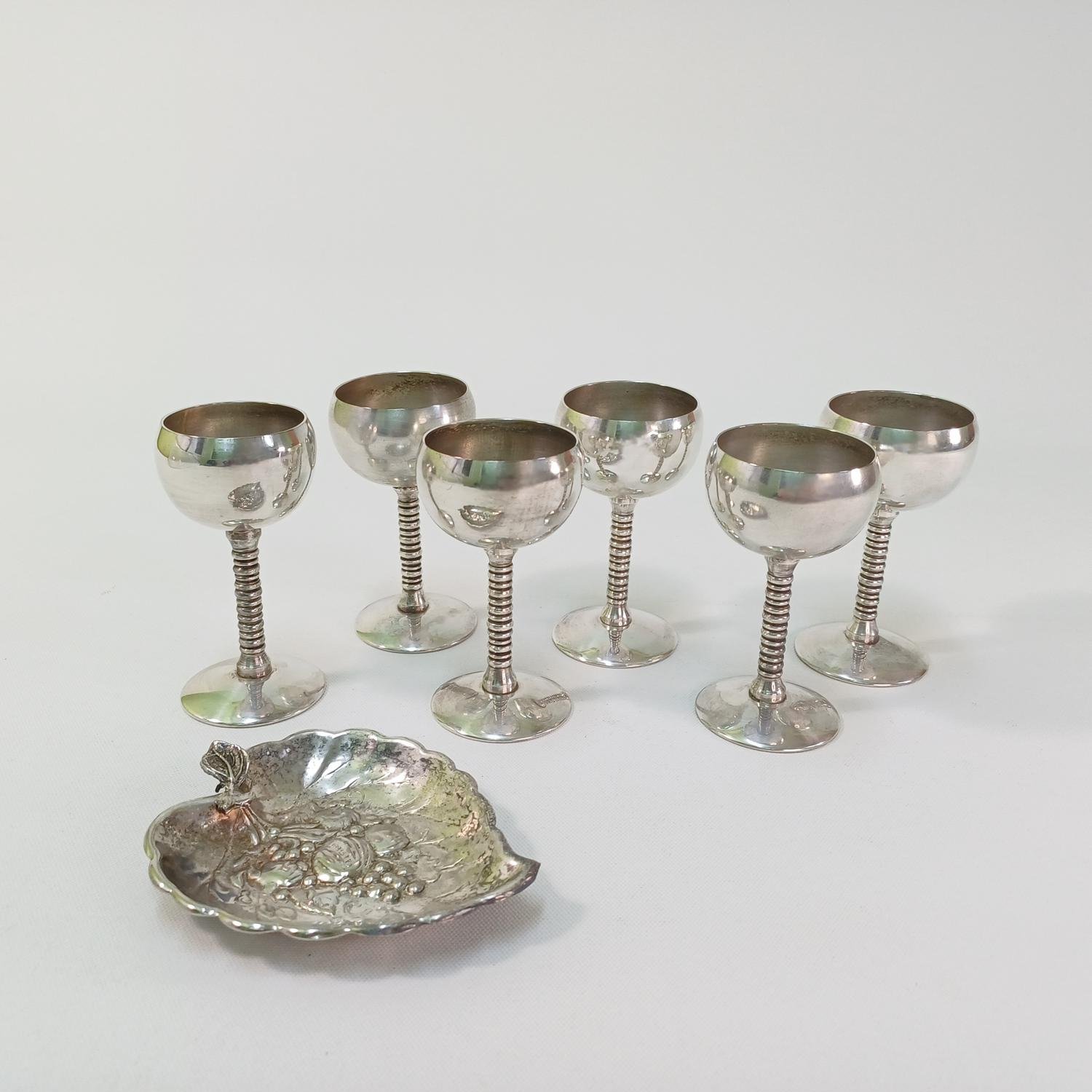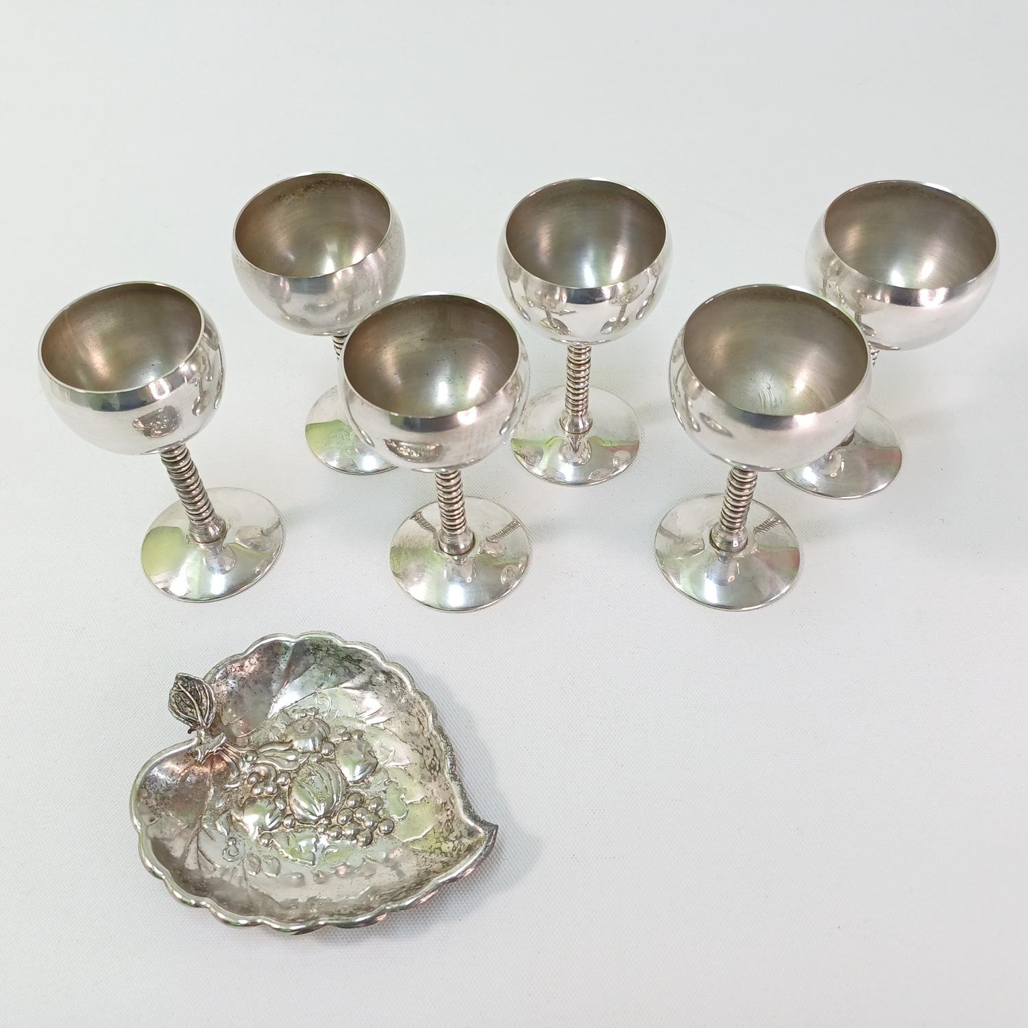 Σετ 6 επάργυρα ποτήρια λικέρ και διακοσμητικό πιατάκι σε σχήμα φύλλου