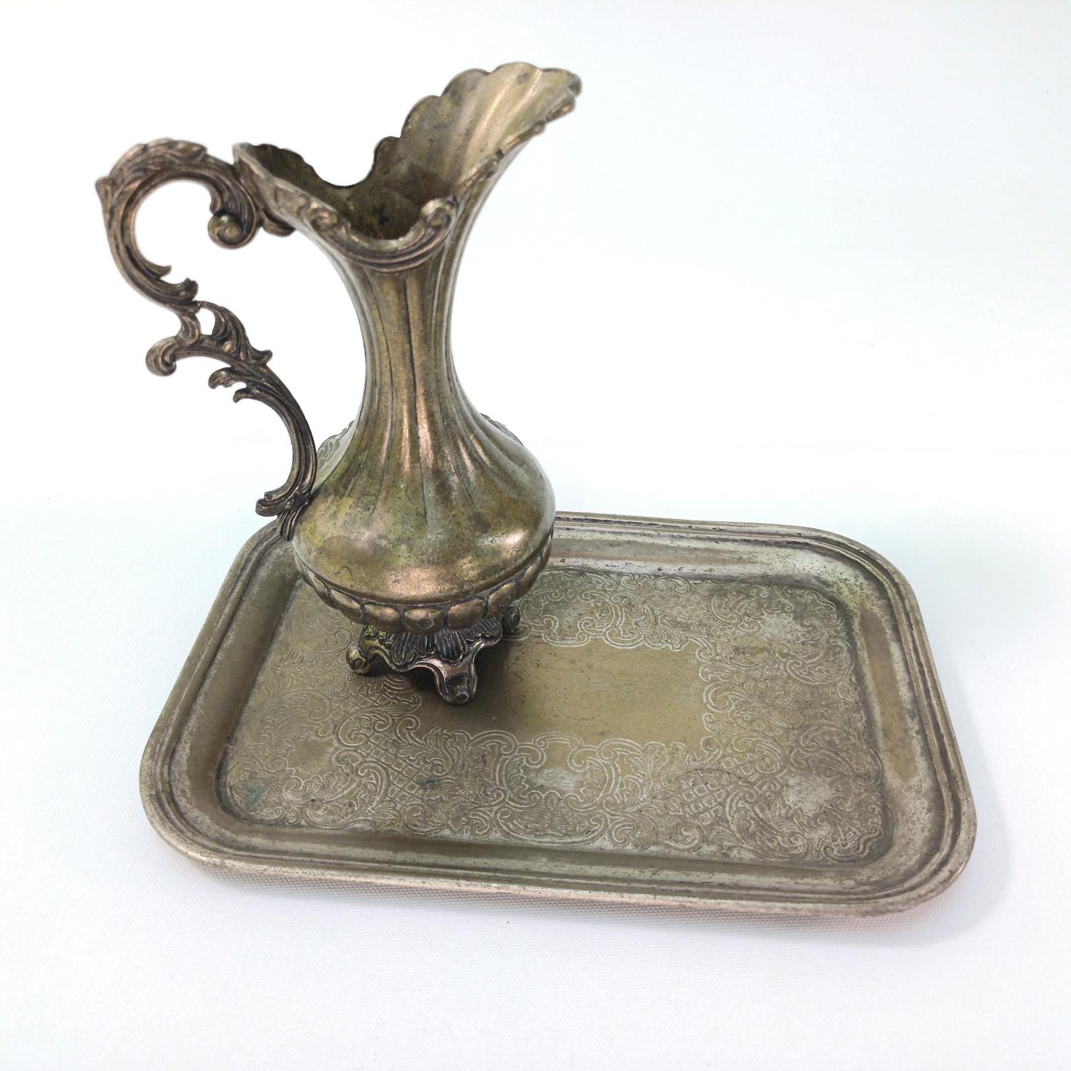 Μπρούτζινος δίσκος με περίτεχνη κανάτα, vintage