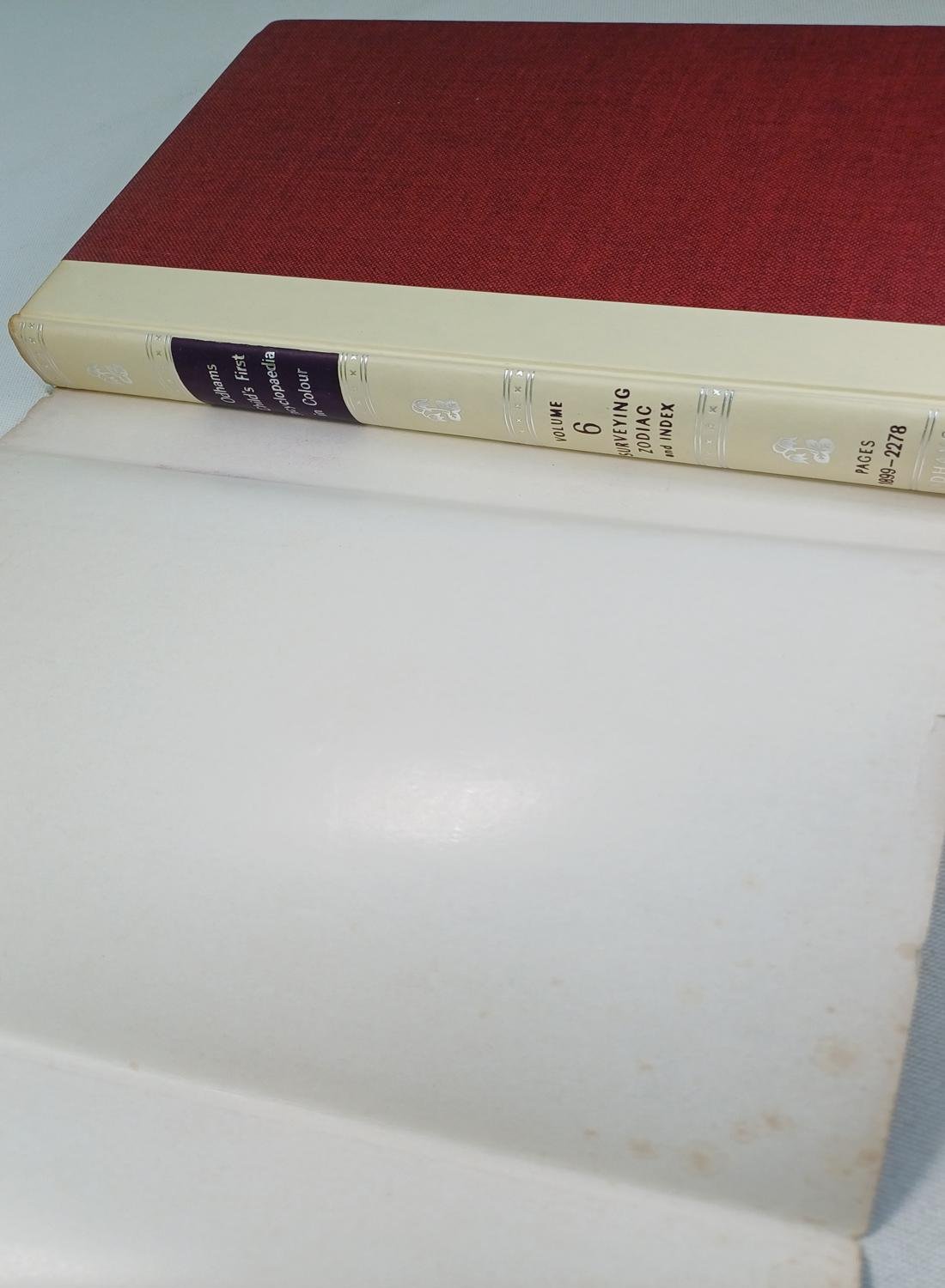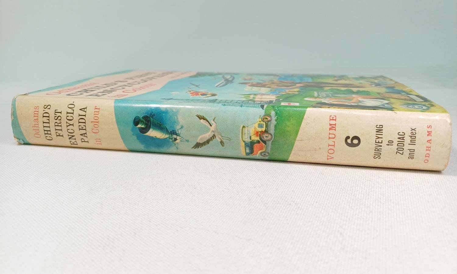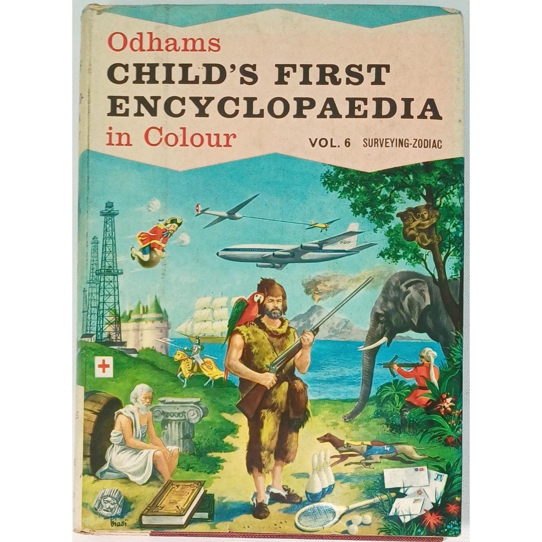 Πρόκειται για τον τόμο 6 της Odhams “Child’s First Encyclopaedia in Colour”, μιας εγκυκλοπαίδειας για παιδιά. Ο συγκεκριμένος τόμος καλύπτει 6 θέματα από το “Surveying” έως το “Zodiac” και είναι πλούσια εικονογραφημένη με έγχρωμες εικόνες.