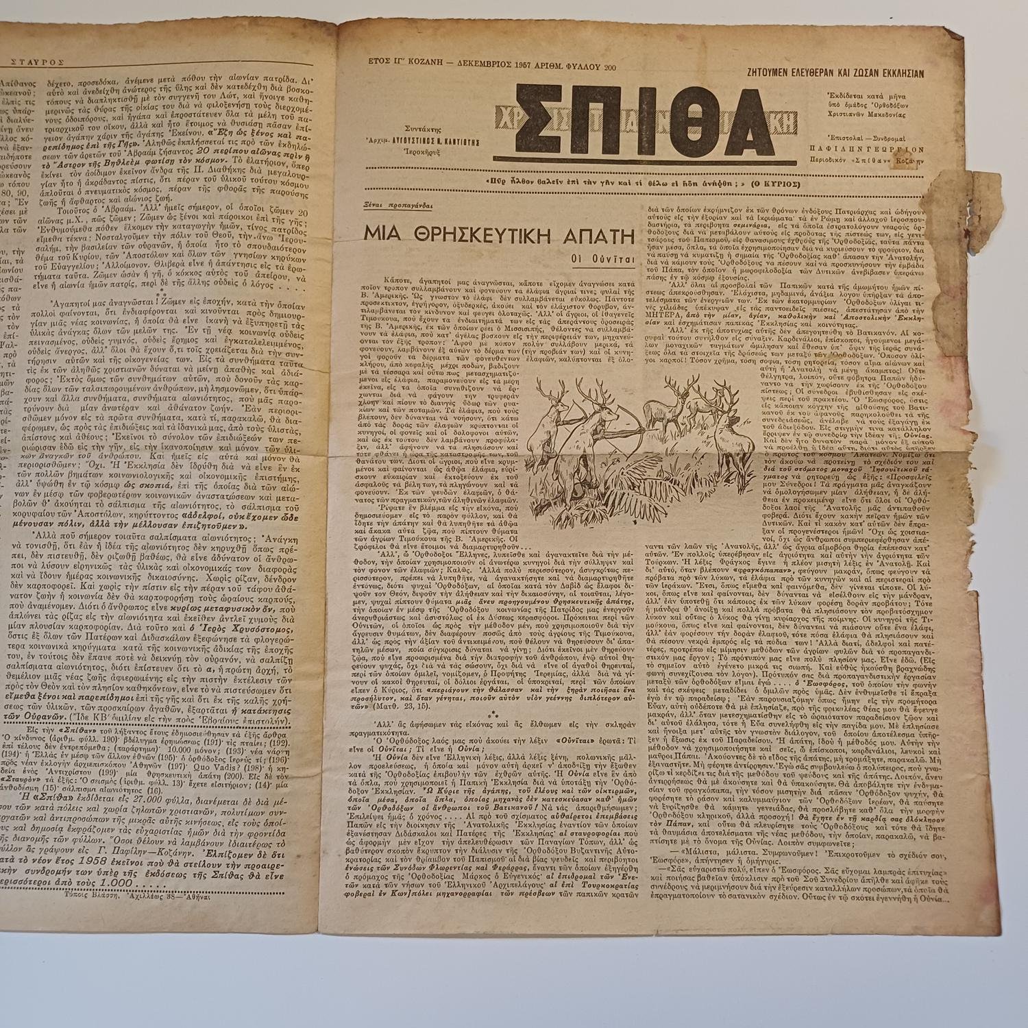 Εφημερίδα ” Σταυρός” 12ος του 1957 αρ. φύλλου 16 / ” ΣΠΙΘΑ” με αρ. φύλλου 200