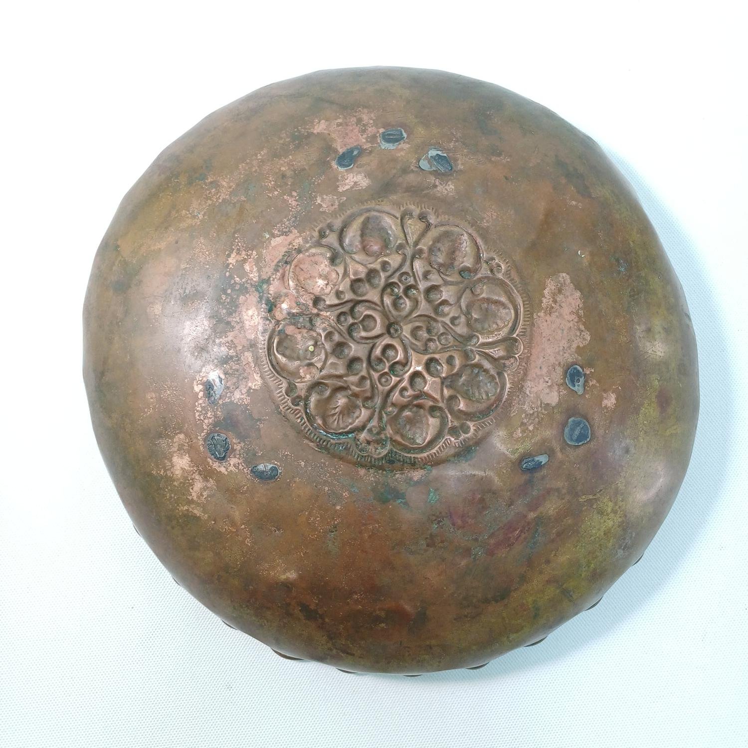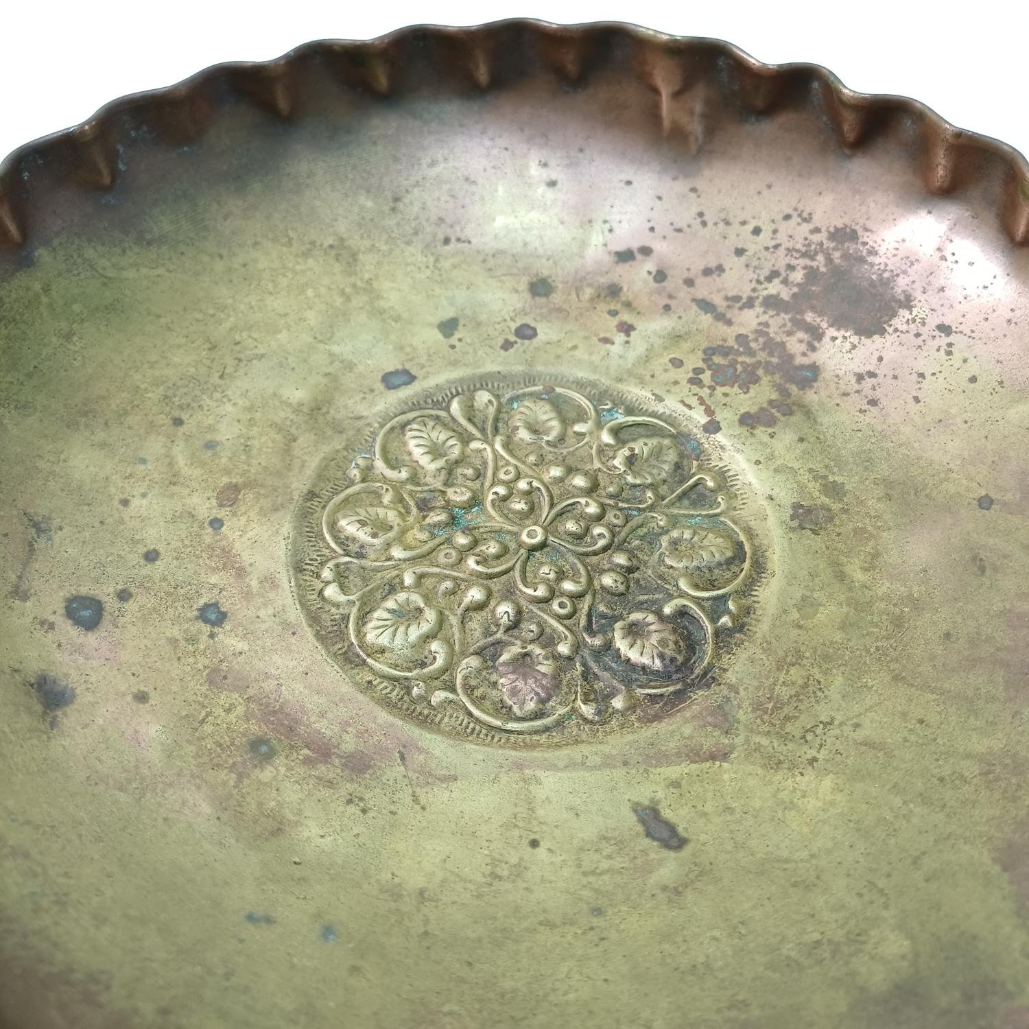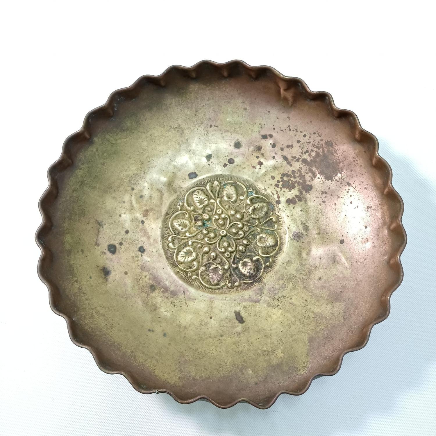 Διακοσμητικό χάλκινο σκεύος με ανάγλυφο, περίτεχνο σχήμα στο κέντρο