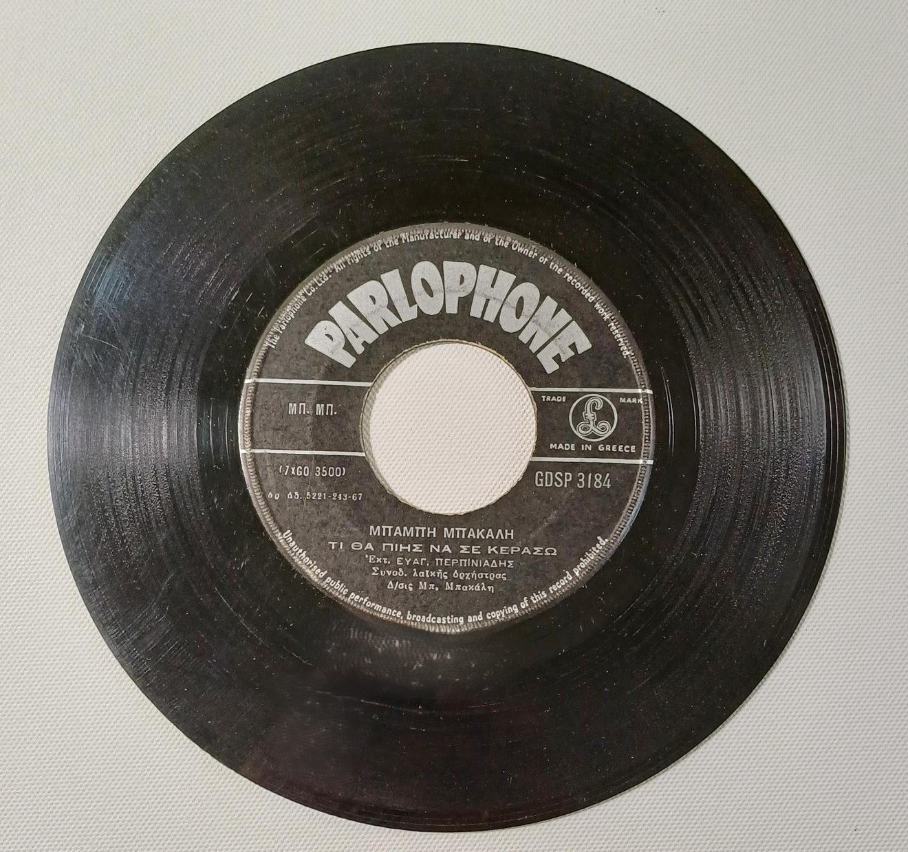 Vintage δίσκος βινυλίου 45 στροφών των Μπάμπη Μπακάλη και Βαγγέλη Περπινιάδη σε παραγωγή της εταιρείας ‘PARLOPHONE’