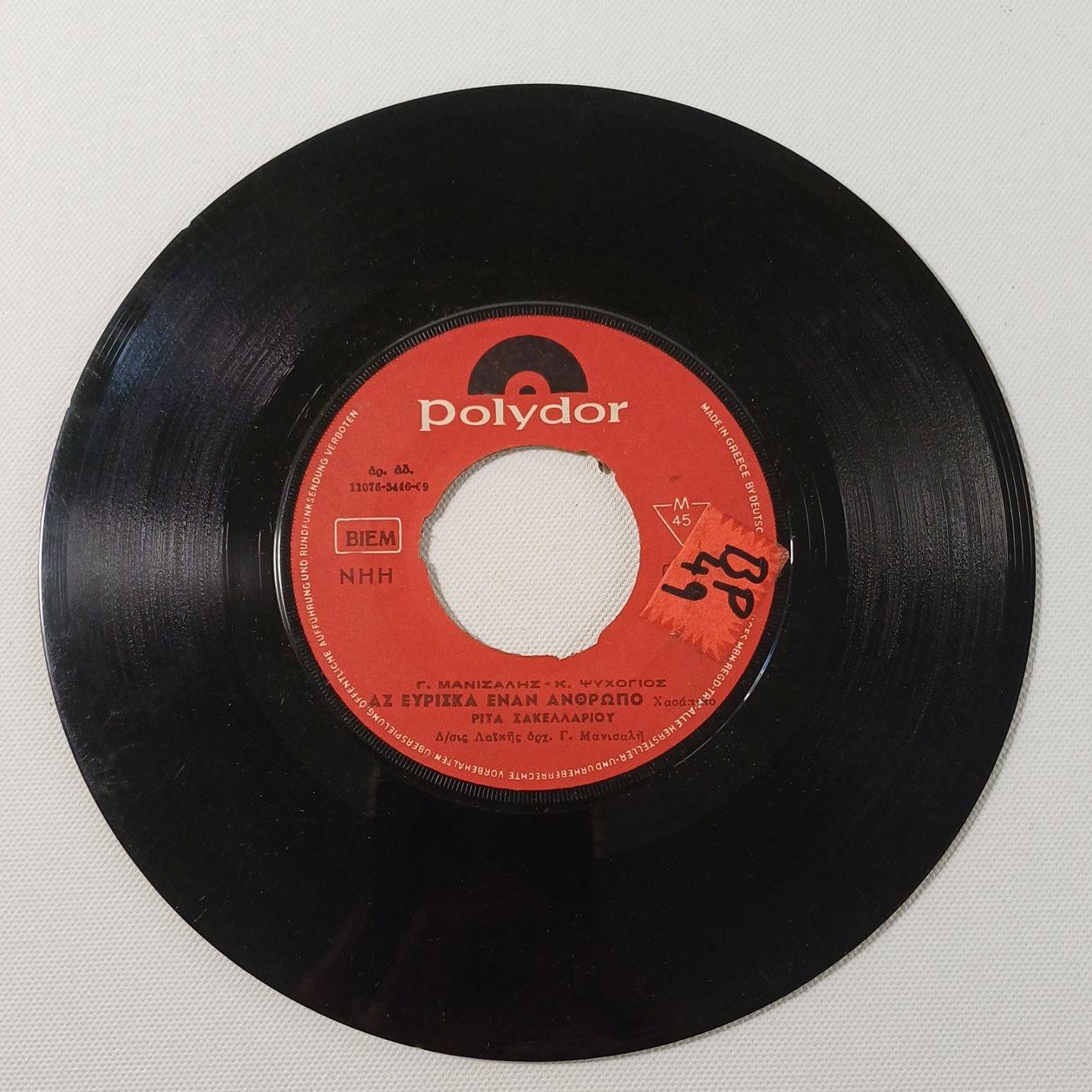 Vintage δίσκος βινυλίου 45 στροφών σε παραγωγή της εταιρείας ‘POLYDOR’
