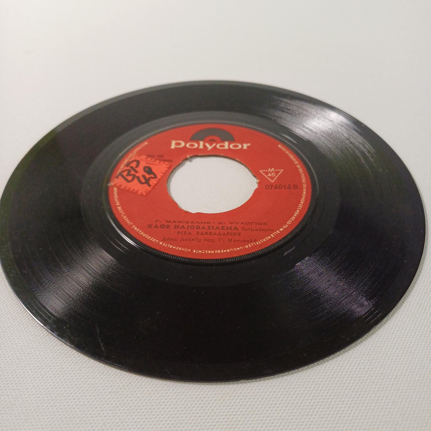 Vintage δίσκος βινυλίου 45 στροφών της Ρϊτας Σακελλαρίου σε παραγωγή της εταιρείας ‘POLYDOR’