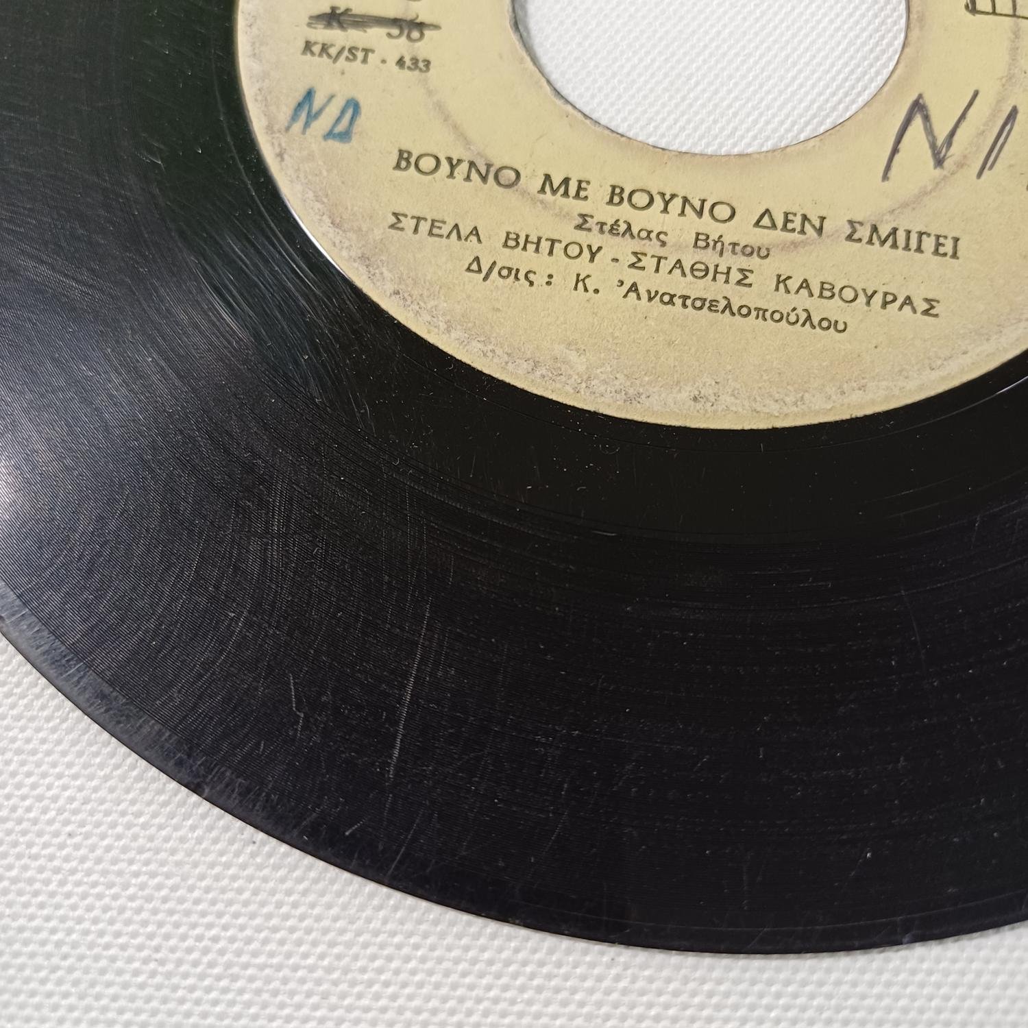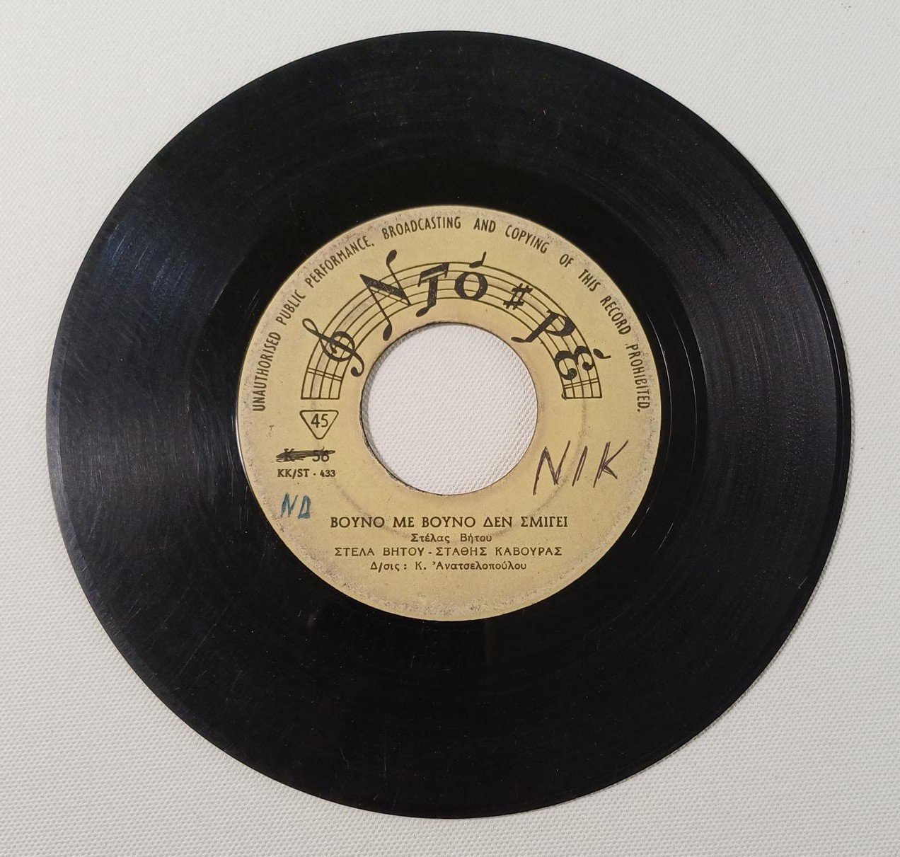 Vintage δίσκος βινυλίου 45 στροφών των Στέλας Βήτου και Στάθη Κάβουρα σε παραγωγή της εταιρείας ‘ΝΤΟ-ΡΕ‘
