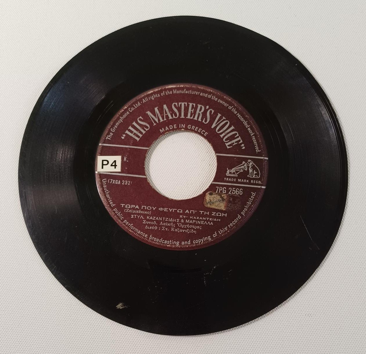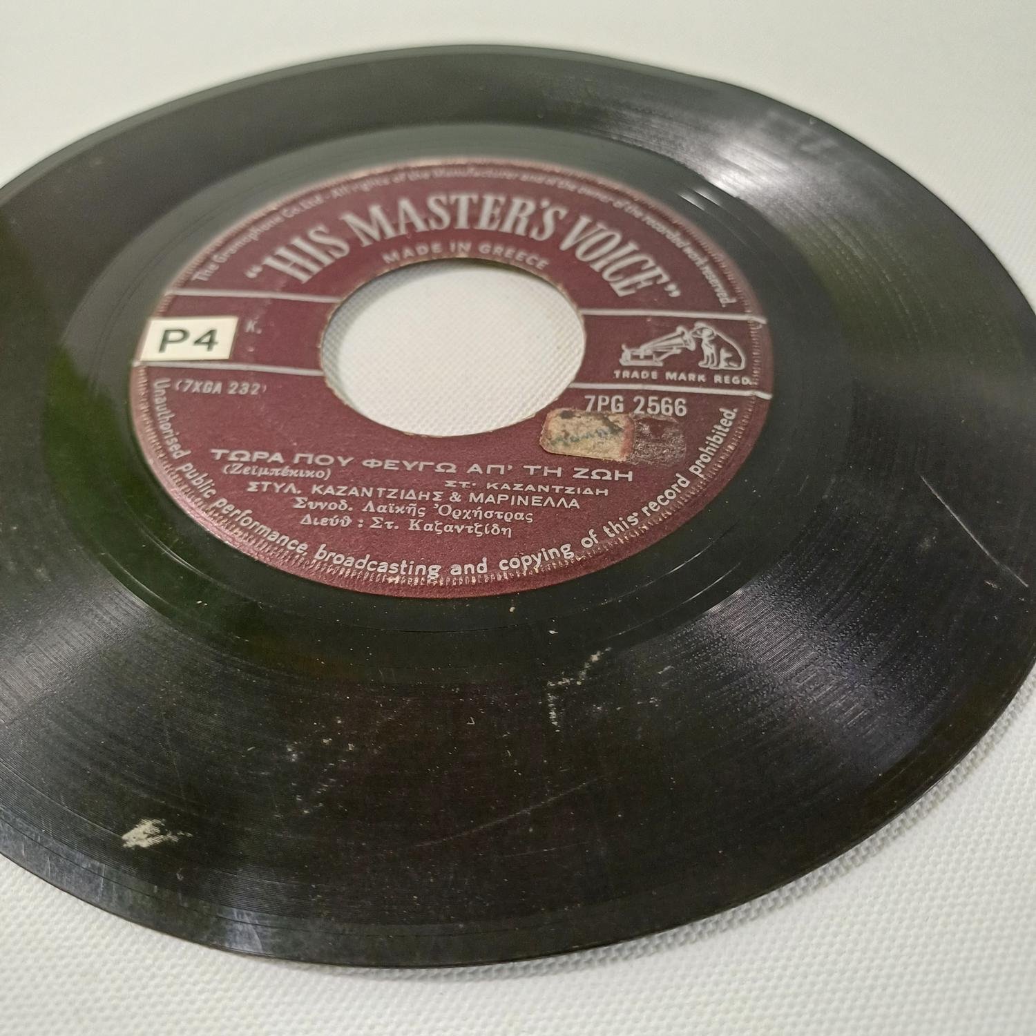 Vintage δίσκος βινυλίου 45 στροφών σε παραγωγή της εταιρείας ‘His master’s voice’
