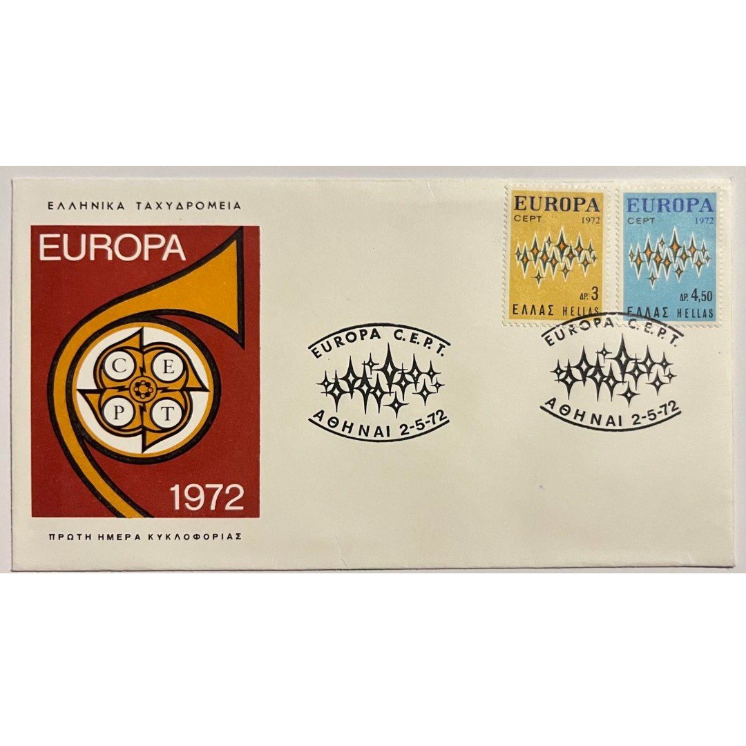 Φάκελος φιλοτελισμού Πρώτης Ημέρας Κυκλοφορίας που εκδόθηκε από τα Ελληνικά Ταχυδρομεία το 1972. Ο φάκελος περιλαμβάνει 2 γραμματόσημα αξίας 3 και 4.50 δραχμών αντίστοιχα με θέμα “EUROPA C.E.P.T.”. Τα γραμματόσημα απεικονίζουν λογότυπα με το “EUROPA C.E.P.T.”. Η ημερομηνία σφραγίδας είναι 2-5-1972 και η τοποθεσία είναι Αθήνα.
