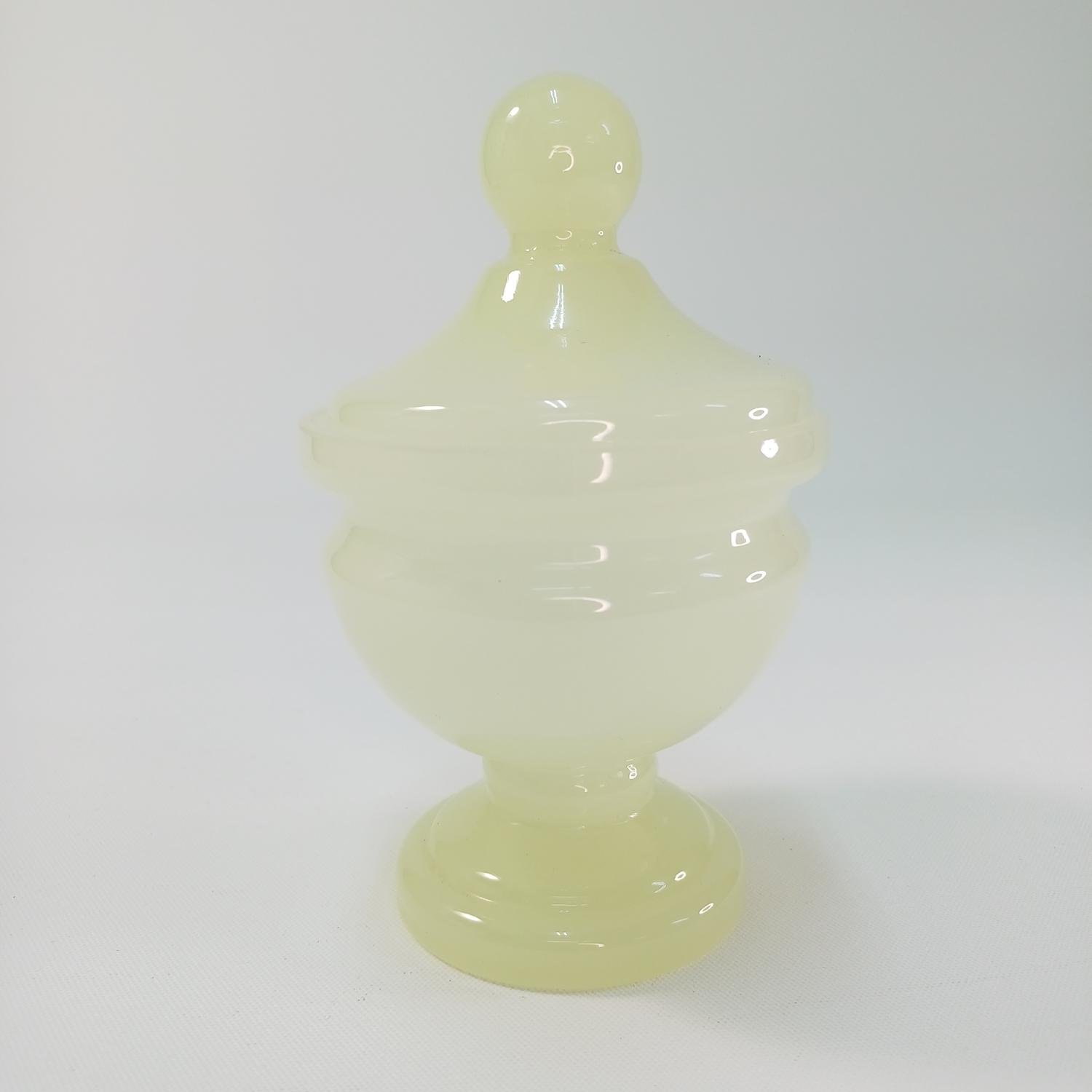 Γυάλινη φοντανιέρα κίτρινης οπαλίνας με καπάκι