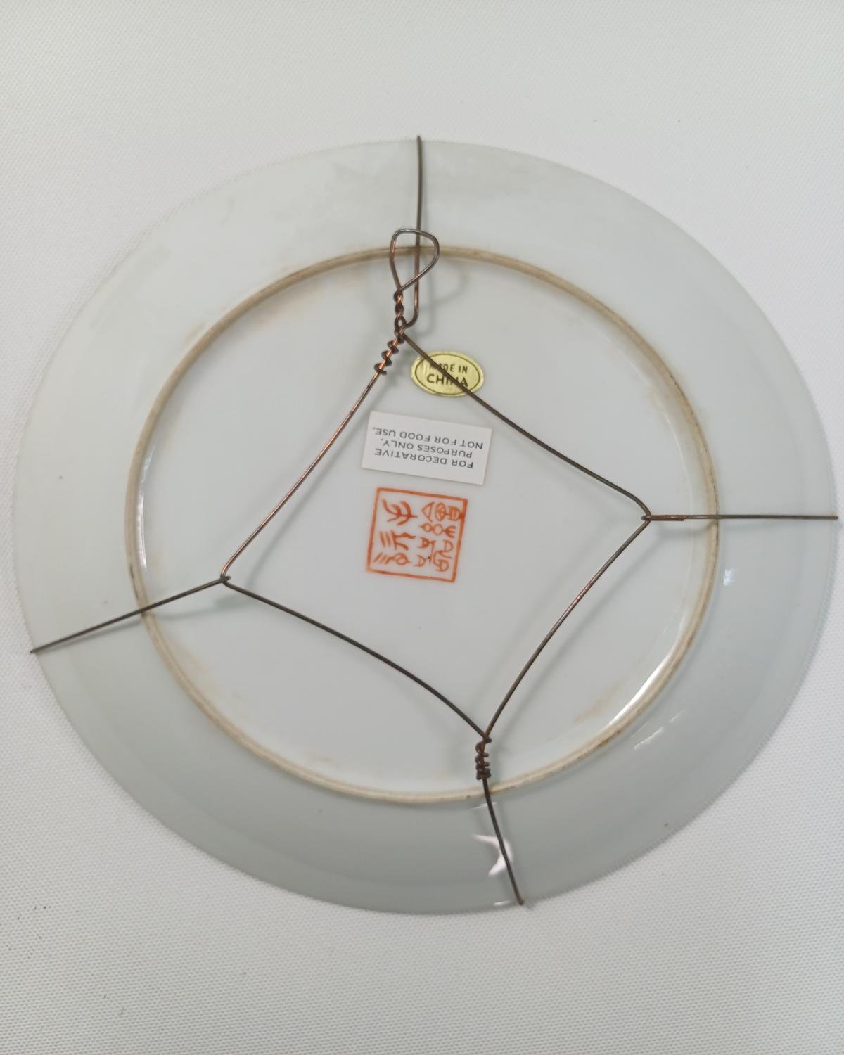 Κινέζικο διακοσμητικό πιάτο από πορσελάνη. Η διάμετρός του είναι 18,5 cm και υπάρχουν κάποιες φθορές στην επιφάνεια λόγω παλαιότητας.