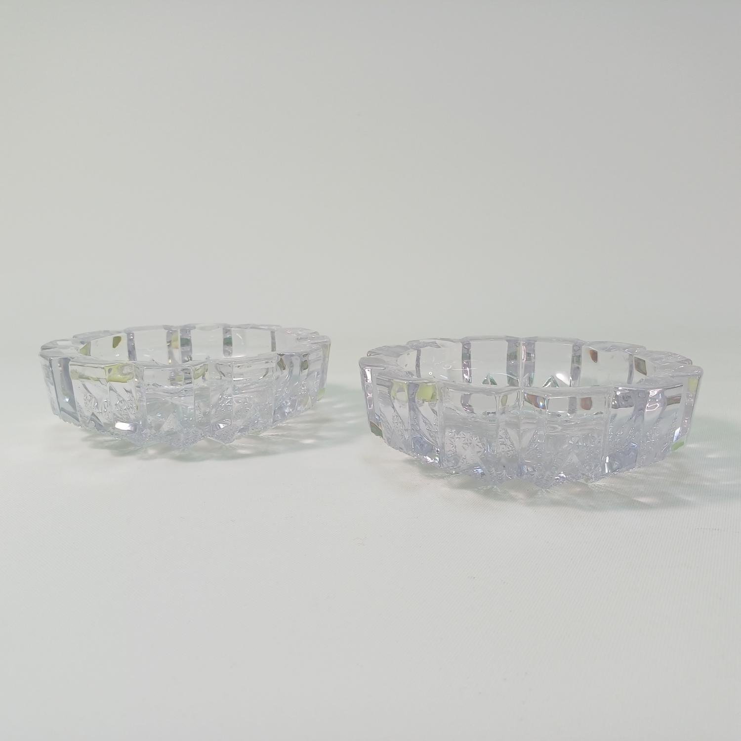 Σετ των 2 κρυστάλλινων σταχτοδοχείων διαμέτρου 16 cm και ύψους 5 cm. Είναι σε πολύ καλή κατάσταση.