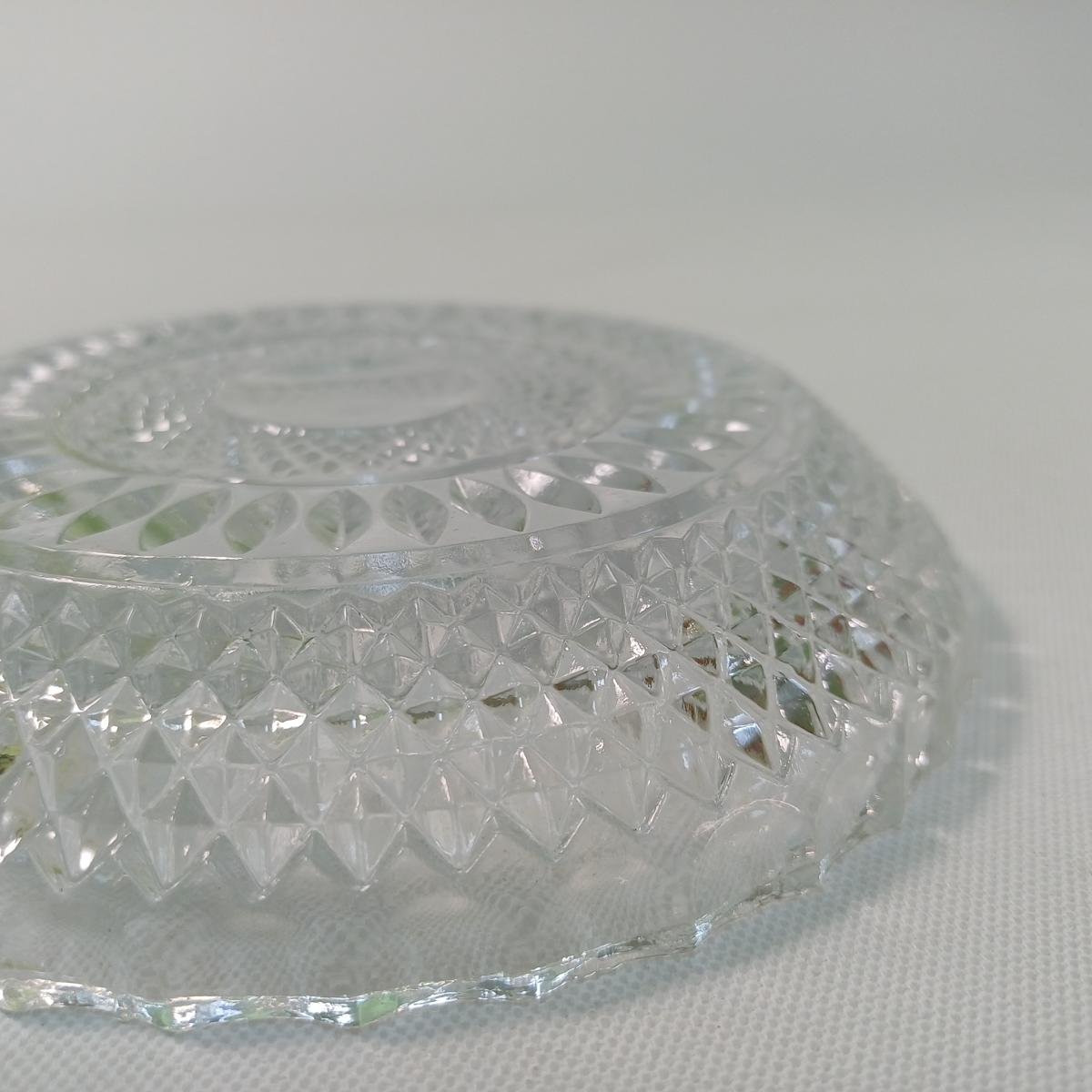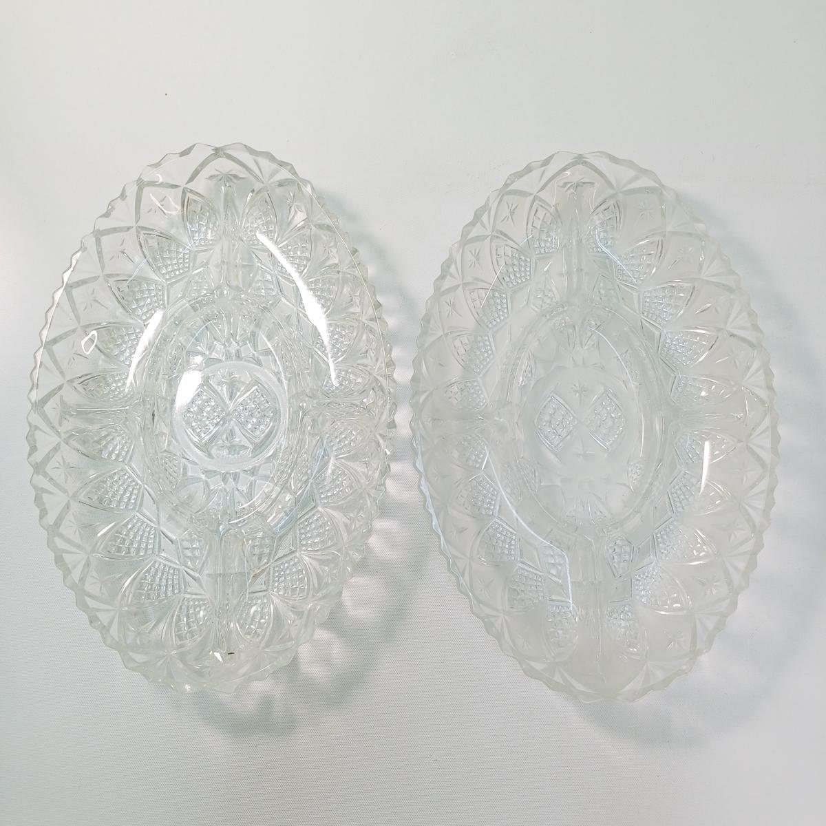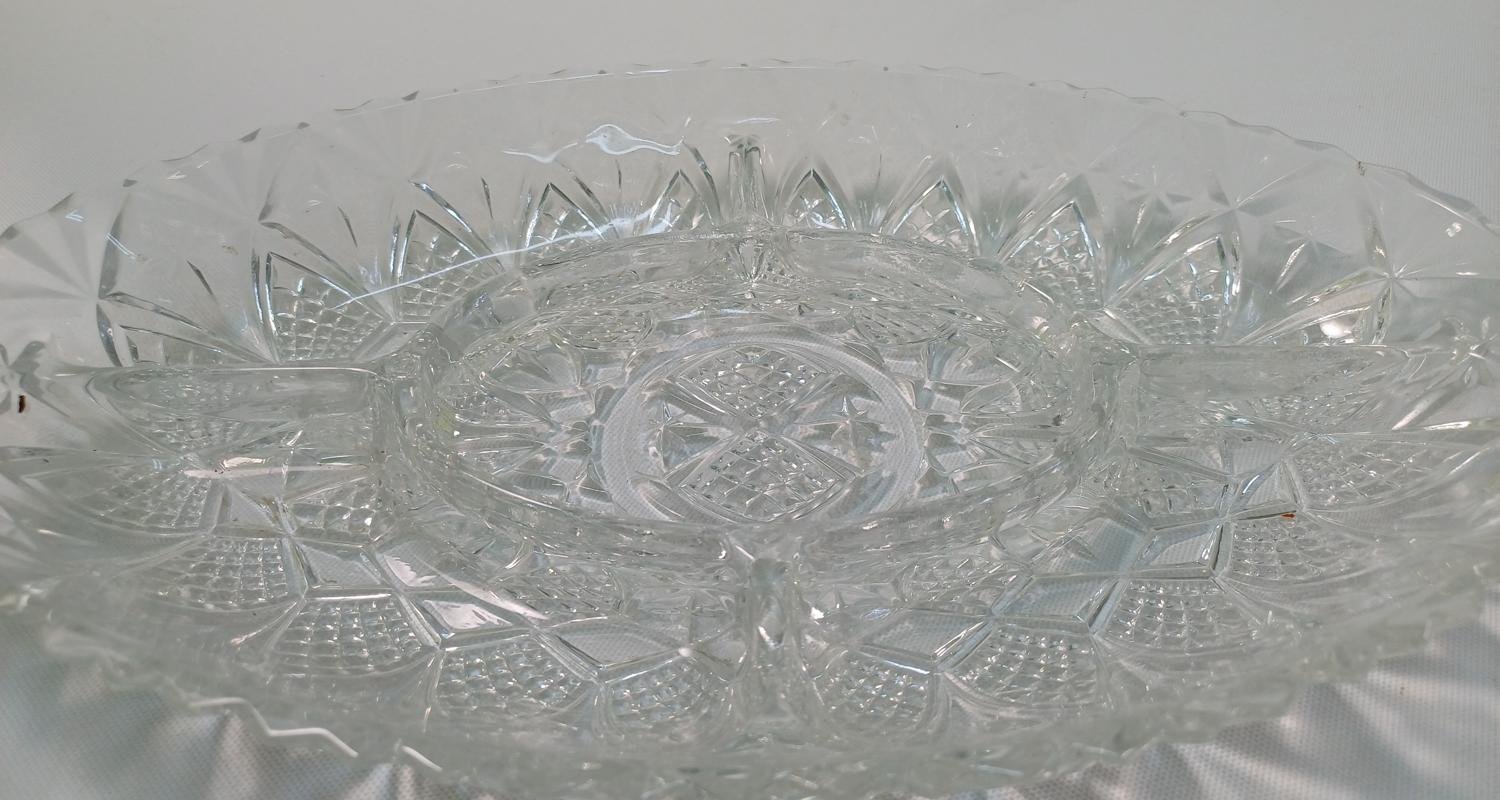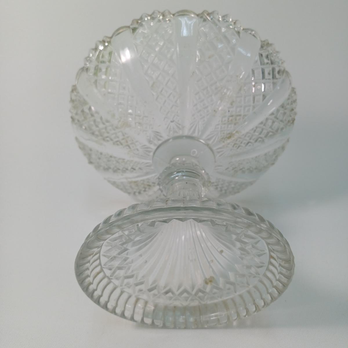 LOT 11 κρυστάλλινων και γυάλινων ειδών σερβιρίσματος. Αποτελείται από: 1) 1 γυάλινη φρουτιέρα με βάση, ύψους 18 cm και διαμέτρου 23 cm, 2) 2 κρυστάλλινες οβάλ πιατέλες ξηρών καρπών, μήκους 31,5 cm και πλάτους 20,5 cm, 3) 1 οβάλ, γυάλινο πιατάκι διαστάσεων 24 x 13,5 cm. Φέρει κάποιες γρατσουνιές στην επιφάνεια του γυαλιού. 4) 1 οβάλ, γυάλινο πιατάκι διαστάσεων 21 x 12 cm. Φέρει κάποιες γρατσουνιές στην επιφάνεια του γυαλιού. 5) 6 κρυστάλλινα πιατάκια, διαμέτρου 14 cm.