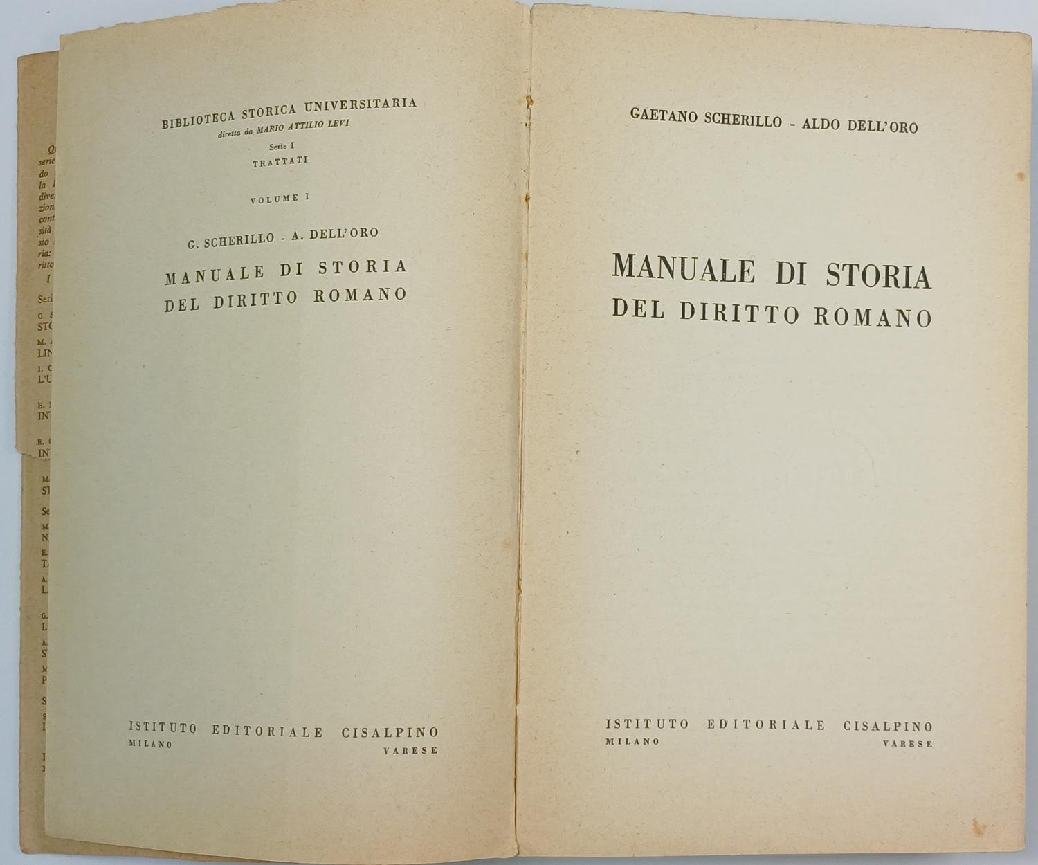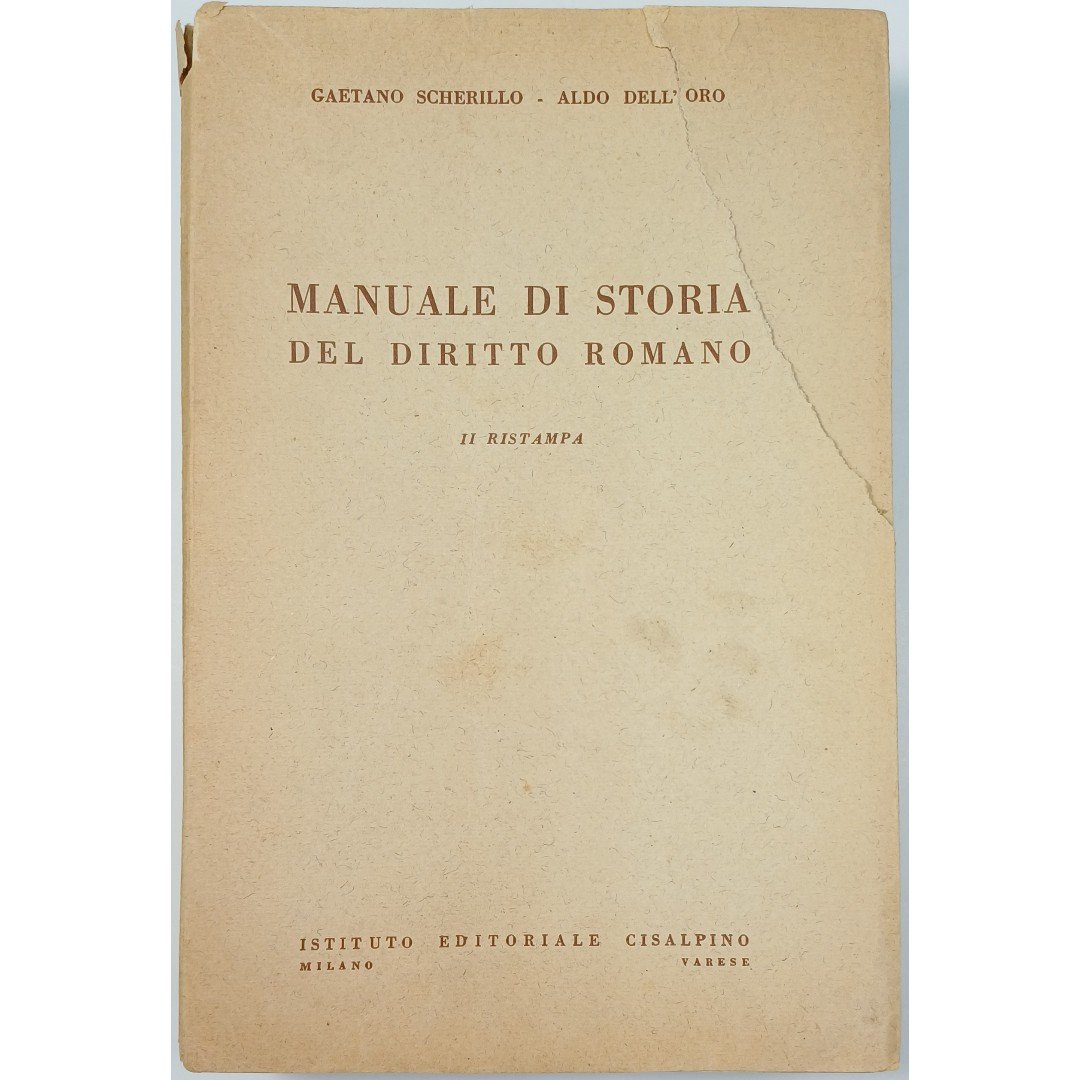Το δυσεύρετο βιβλίο “Manuale di Storia del Diritto Romano” (Εγχειρίδιο Ιστορίας του Ρωμαϊκού Δικαίου), γραμμένο από τους Gaetano Scherillo και Aldo Dell’Oro, αποτελεί ένα κλασικό ακαδημαϊκό σύγγραμμα στον τομέα του Ρωμαϊκού Δικαίου. Χρησιμοποιείται ευρέως σε νομικές σχολές, κυρίως στην Ιταλία, ως βασικό εγχειρίδιο για τη διδασκαλία της ιστορικής εξέλιξης του ρωμαϊκού δικαίου, καλύπτοντας θέματα όπως οι φάσεις ανάπτυξής του και οι πηγές του δικαίου.