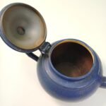 Μεταλλική τσαγιέρα με αύξοντα αριθμό 14 στη βάση. Έχει φθορές στην επίστρωση λόγω χρήσης και παλαιότητας. Έχει ύψος 14 cm και διάμετρο 13,5 cm.