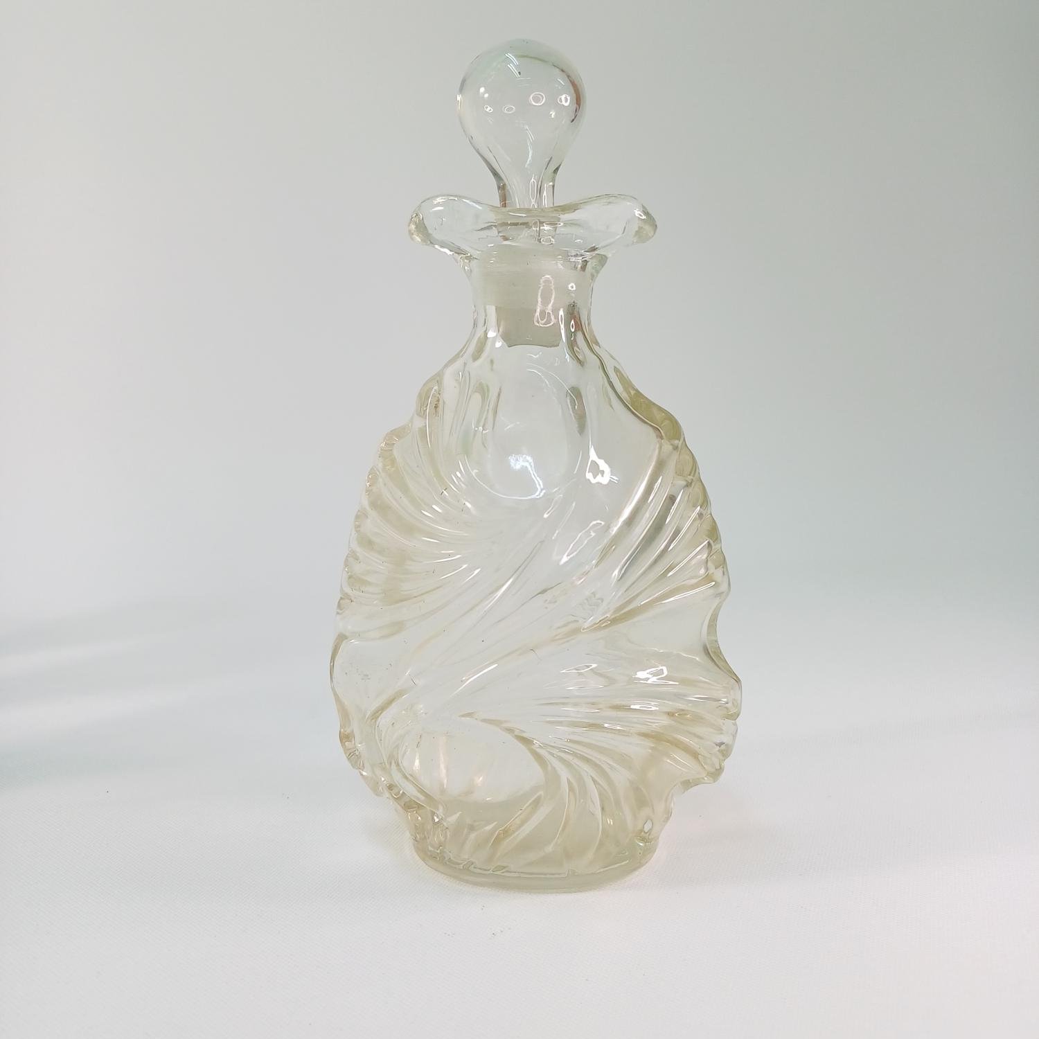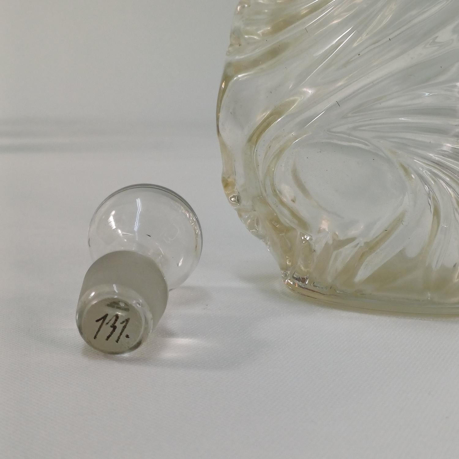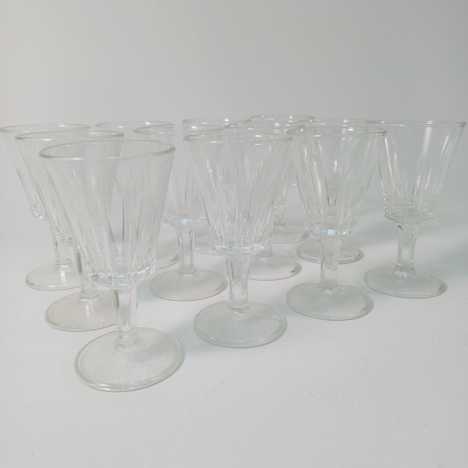 Σετ γυάλινων ποτηριών λικέρ με φιάλη. Αποτελείται από 12 ποτήρια ύψους 10,5 cm και διαμέτρου 5,5cm και μια γυάλινη φιάλη με πώμα ύψους 20 cm. Είναι όλα σε καλή κατάσταση και υπάρχει ο αριθμός 131 στο πώμα της φιάλης.