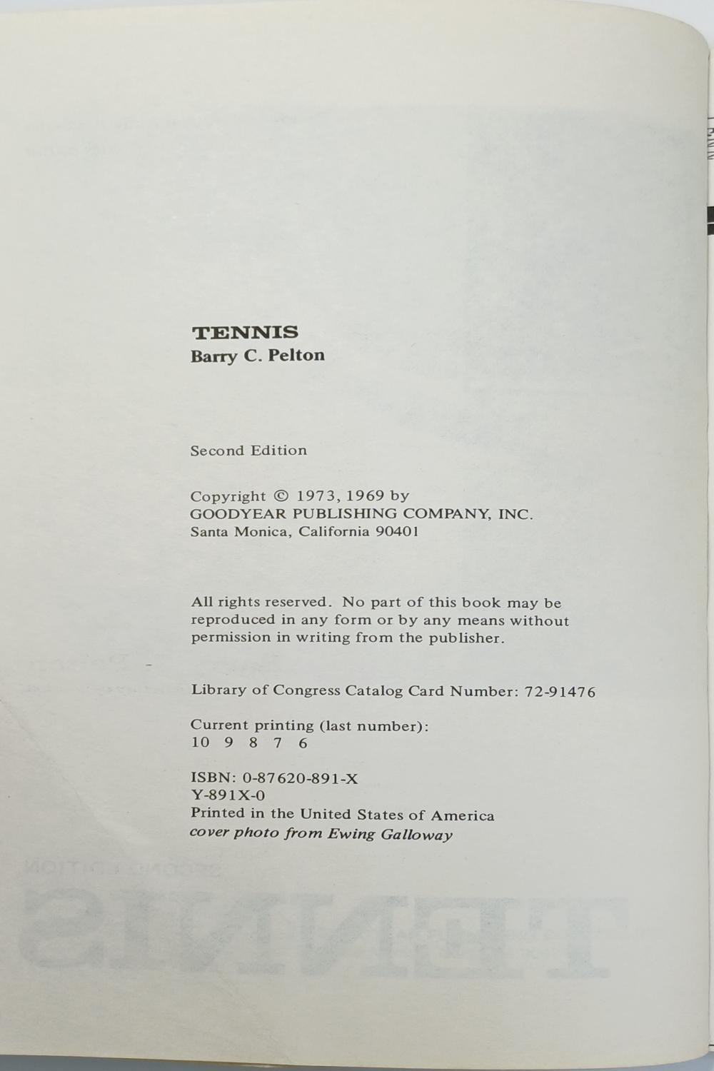 Το βιβλίο “Tennis” του Barry C. Pelton, μέρος της σειράς Goodyear Physical Activities Series, αποτελεί έναν συνοπτικό, εικονογραφημένο οδηγό που δημοσιεύθηκε το 1973 με σκοπό την εκπαίδευση και εκμάθηση του αθλήματος του τένις. Είναι ένα εγχειρίδιο που εστιάζει στις οδηγίες, τους κανόνες και τις τεχνικές του παιχνιδιού, σχεδιασμένο ως εκπαιδευτικό βοήθημα για φοιτητές και εκπαιδευτές.