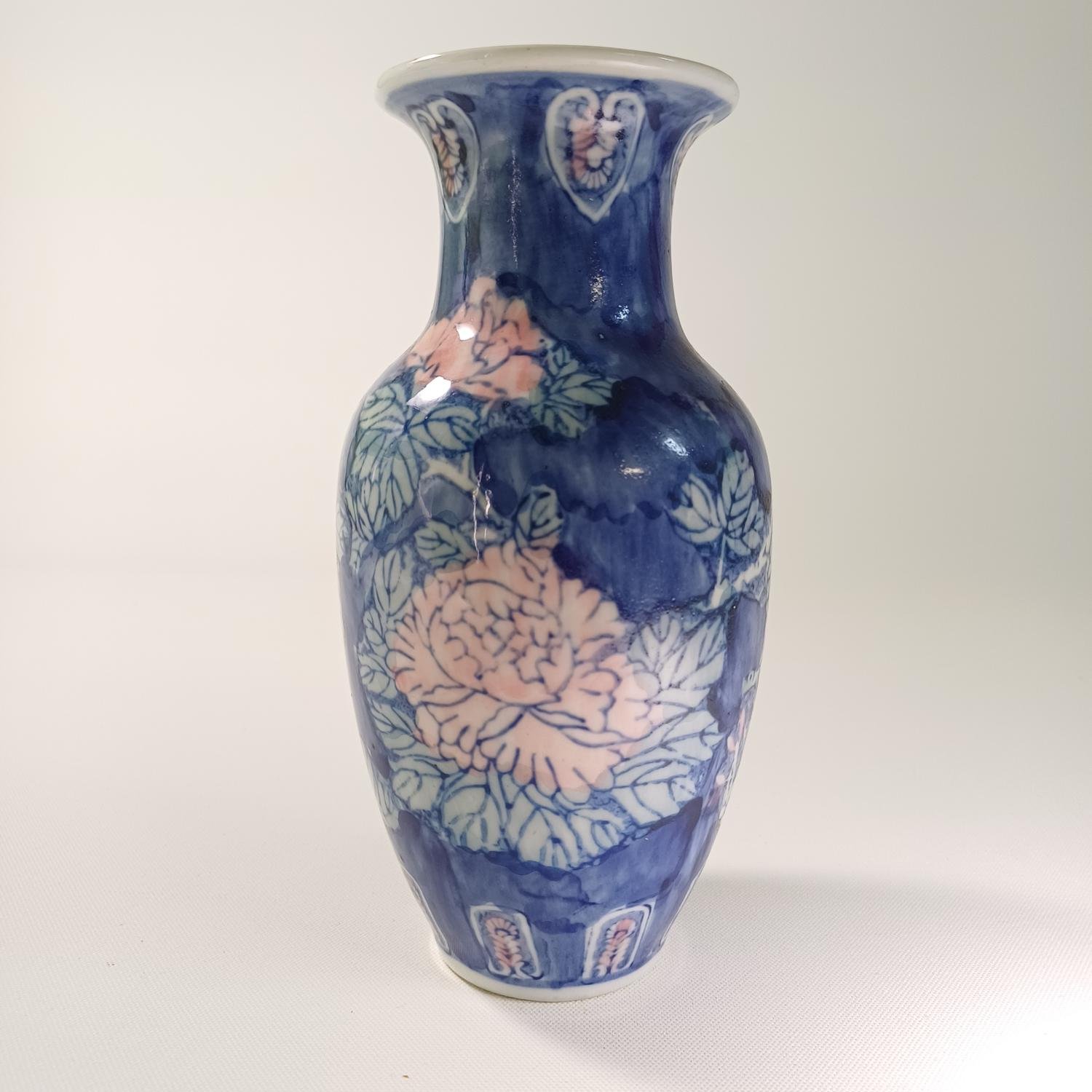 Βάζο πορσελάνης με λουλούδια ζωγραφισμένο στο χέρι. Έχει ύψος 20 cm και διάμετρο 10 cm. Υπάρχουν μικρές φθορές στην επιφάνεια λόγω παλαιότητας.