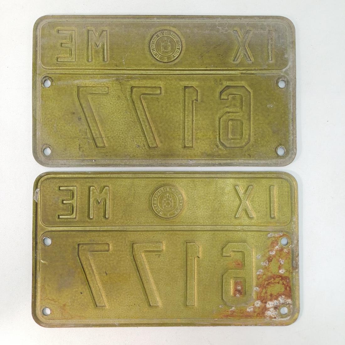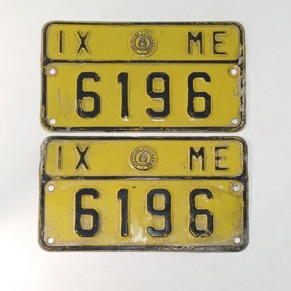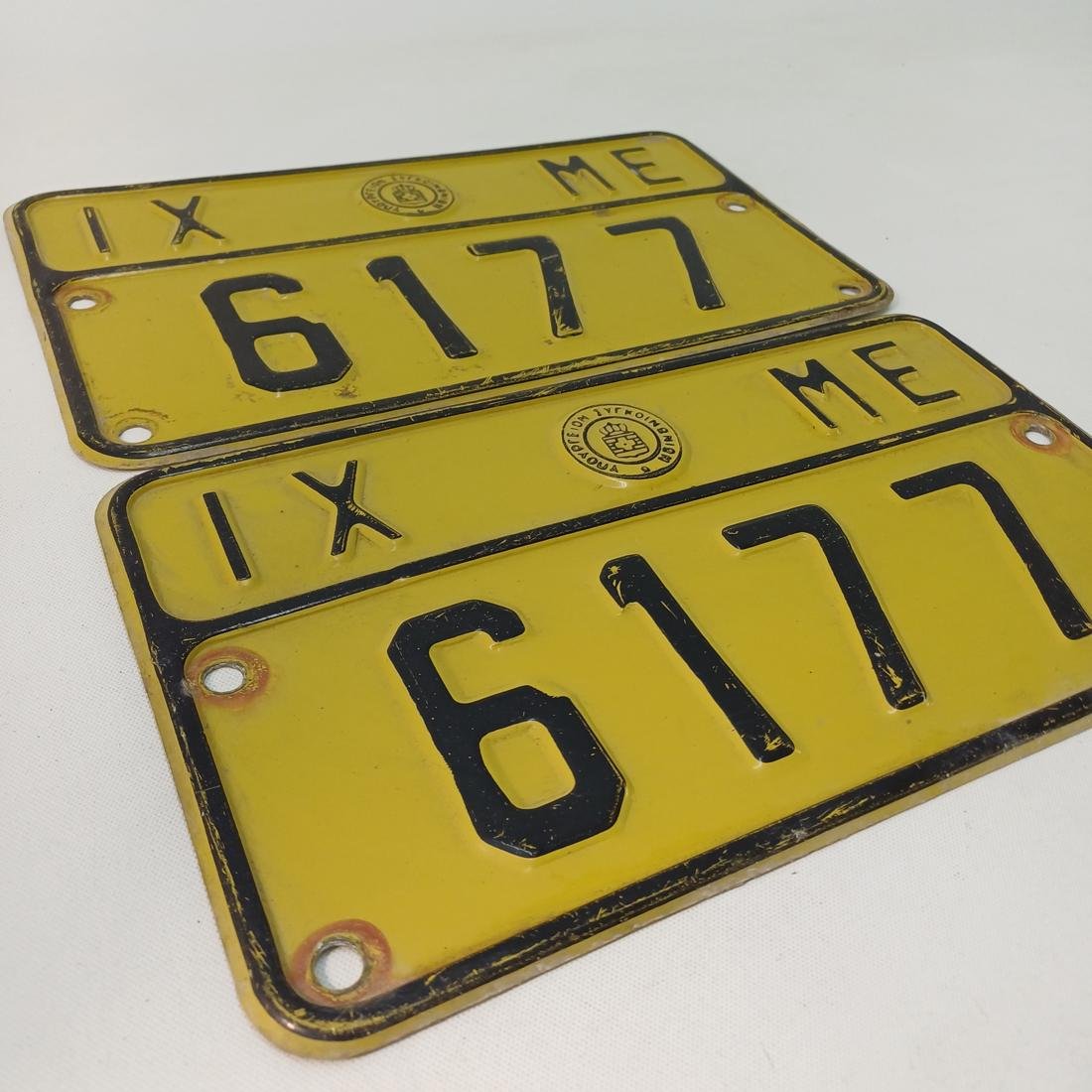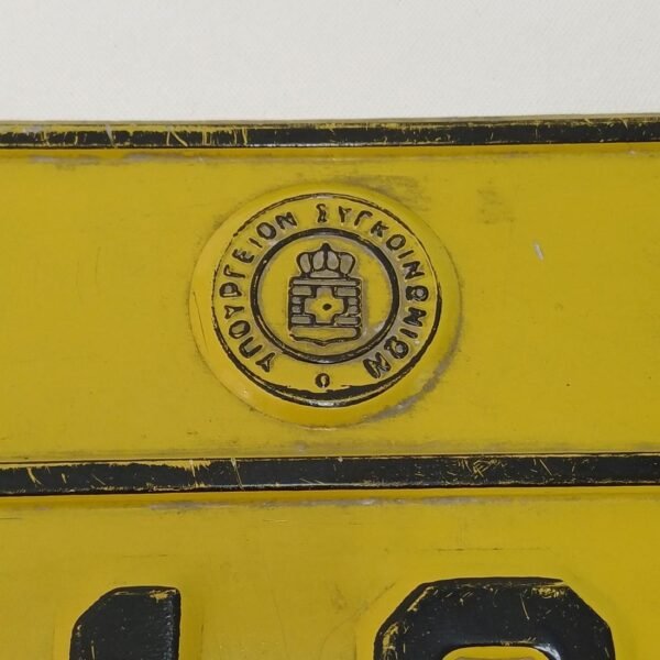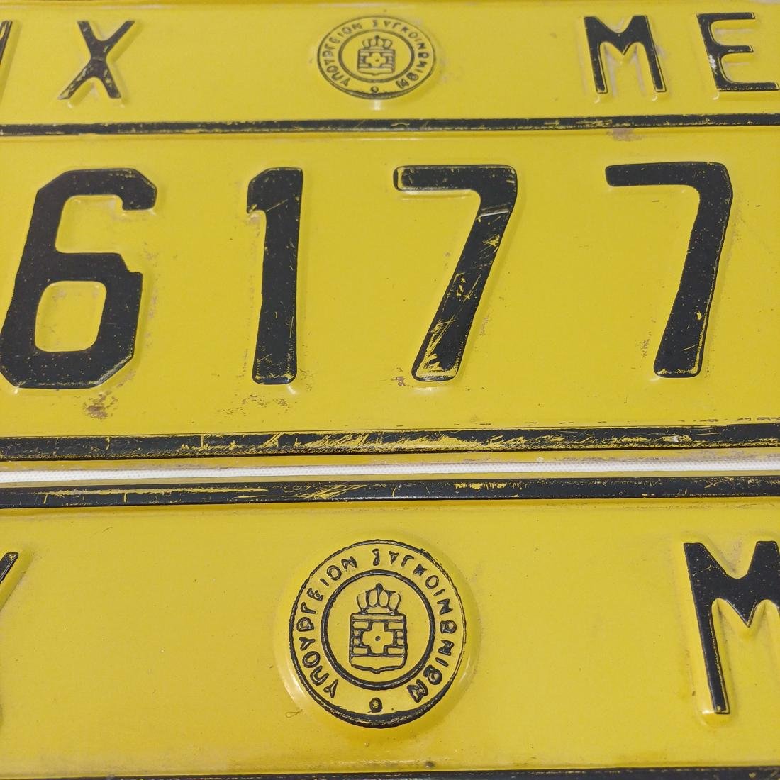 Vintage ζευγάρι πινακίδων ειδικών οχημάτων, συγκεκριμένα μηχανημάτων έργων (ΙΧ- ΜΕ) το οποίο φέρει τη σφραγίδα του Υπουργείο Συγκοινωνιών την περίοδο του Βασιλείου της Ελλάδος, συνεπώς οι πινακίδες χρονολογούνται πριν το 1973.
