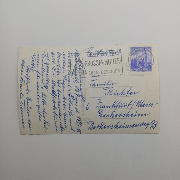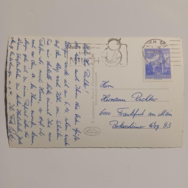 Αναγράφεται προσωπική σημείωση μαζί με μία σφραγίδα και ένα γραμματόσημο (χρονολ. 1965). (πίσω όψη)