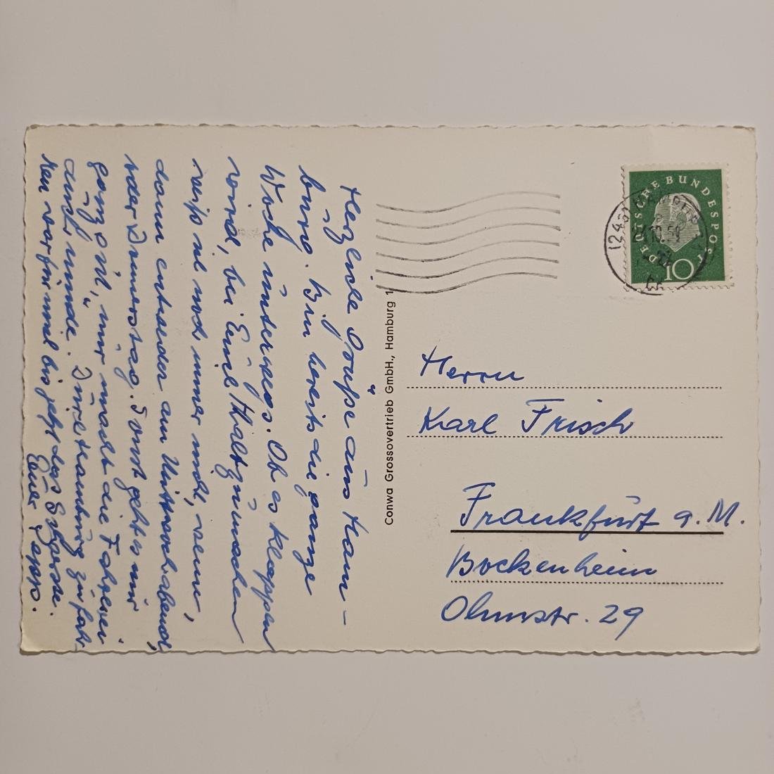 Αναγράφεται προσωπική σημείωση μαζί με μία σφραγίδα και ένα γραμματόσημο. (πίσω όψη)