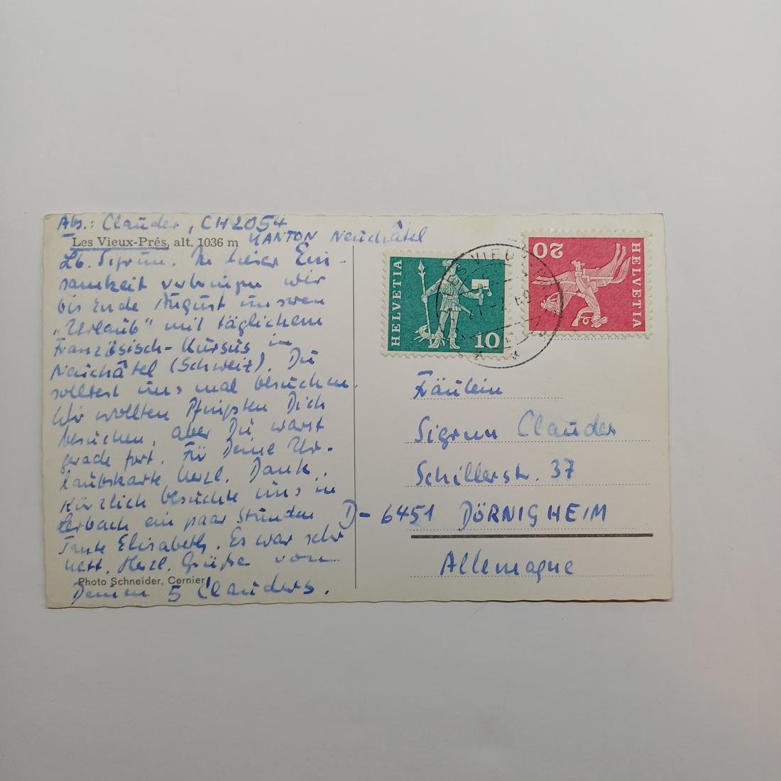 Vintage Καρτ Ποστάλ  “Les Vieux-Prés, alt 1036m” (δεύτερο μισό του 20ού αιώνα).