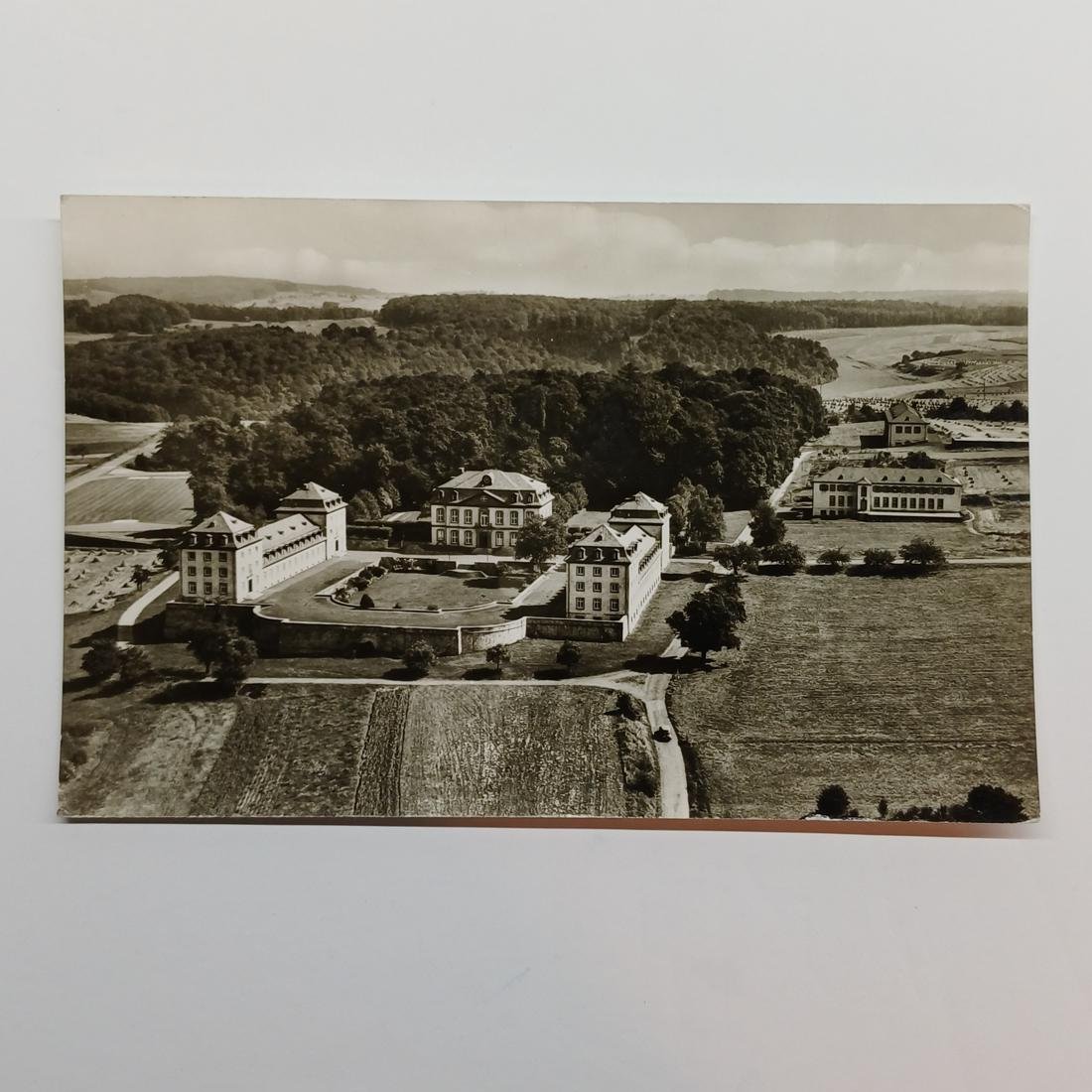 Η vintage καρτ ποστάλ απεικονίζει το Windhof, ένα πρώην κυνηγετικό κάστρο, στην πόλη Weilburg της Γερμανίας. Χρονολογείται στα μέσα του 20ου αιώνα. (μπροστινή όψη)
