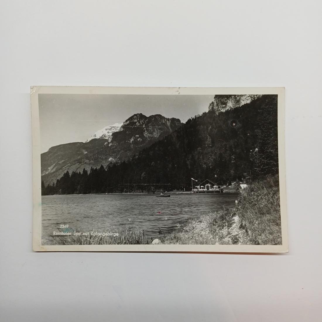 Η vintage καρτ ποστάλ απεικονίζει τη λίμνη Reintaler See στην Αυστρία με φόντο με την οροσειρά Rofangebirge. Χρονολογείται στα μέσα του 20ού αιώνα με αριθμό 2349. (μπροστινή όψη)
