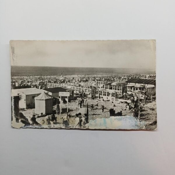 Η vintage καρτ ποστάλ απεικονίζει την παραλία του Scheveningen στη Χάγη της Ολλανδίας. Χρονολογείται στο δεύτερο μισό του 20ού αιώνα. (μπροστινή όψη)