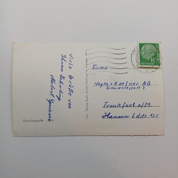 Αναγράφεται προσωπική σημείωση μαζί με μία σφραγίδα και ένα γραμματόσημο. (πίσω όψη)