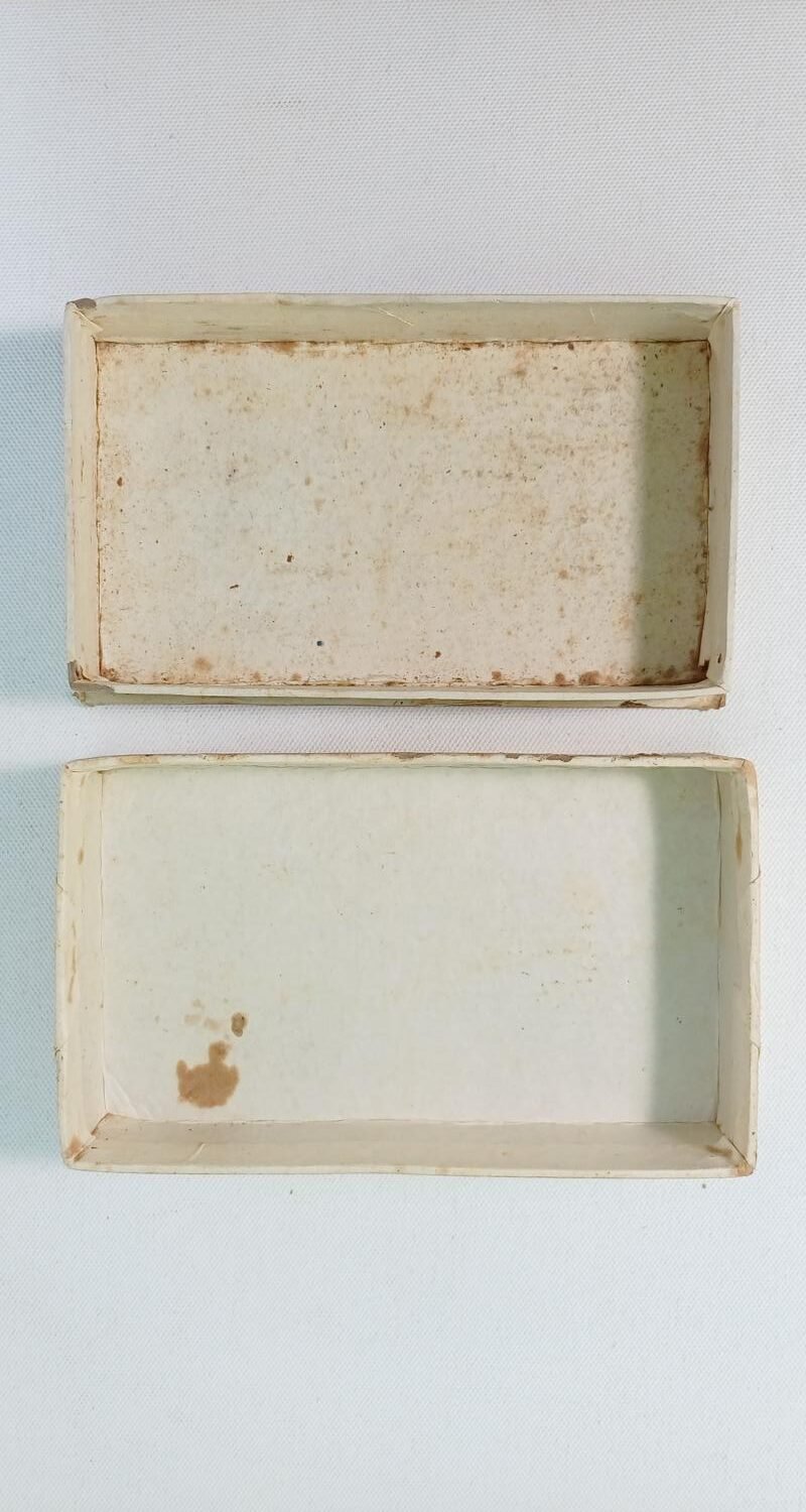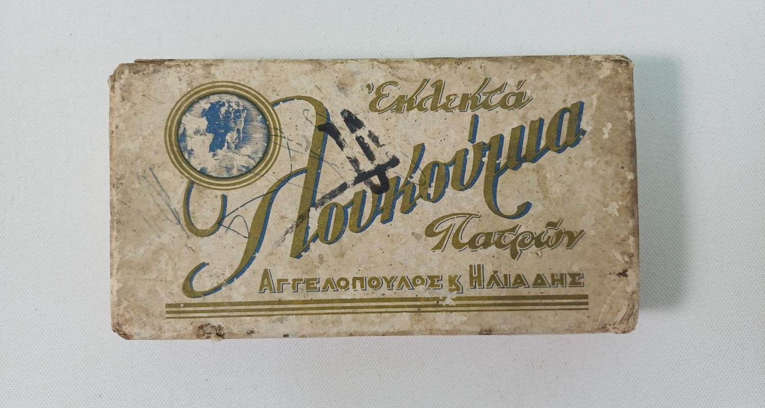 2 vintage χάρτινα κουτιά από λουκούμια (Αγγελόπουλος & Ηλιάδης) και κουραμπιέδες (Εμμ. Καρανδρέα). Το κουτί από τα λουκούμια είναι της εταιρείας “Αγγελόπουλος & Ηλιάδης” με έδρα την Πάτρα. Οι διαστάσεις του είναι 15,5 x 8,5 x 3 cm.