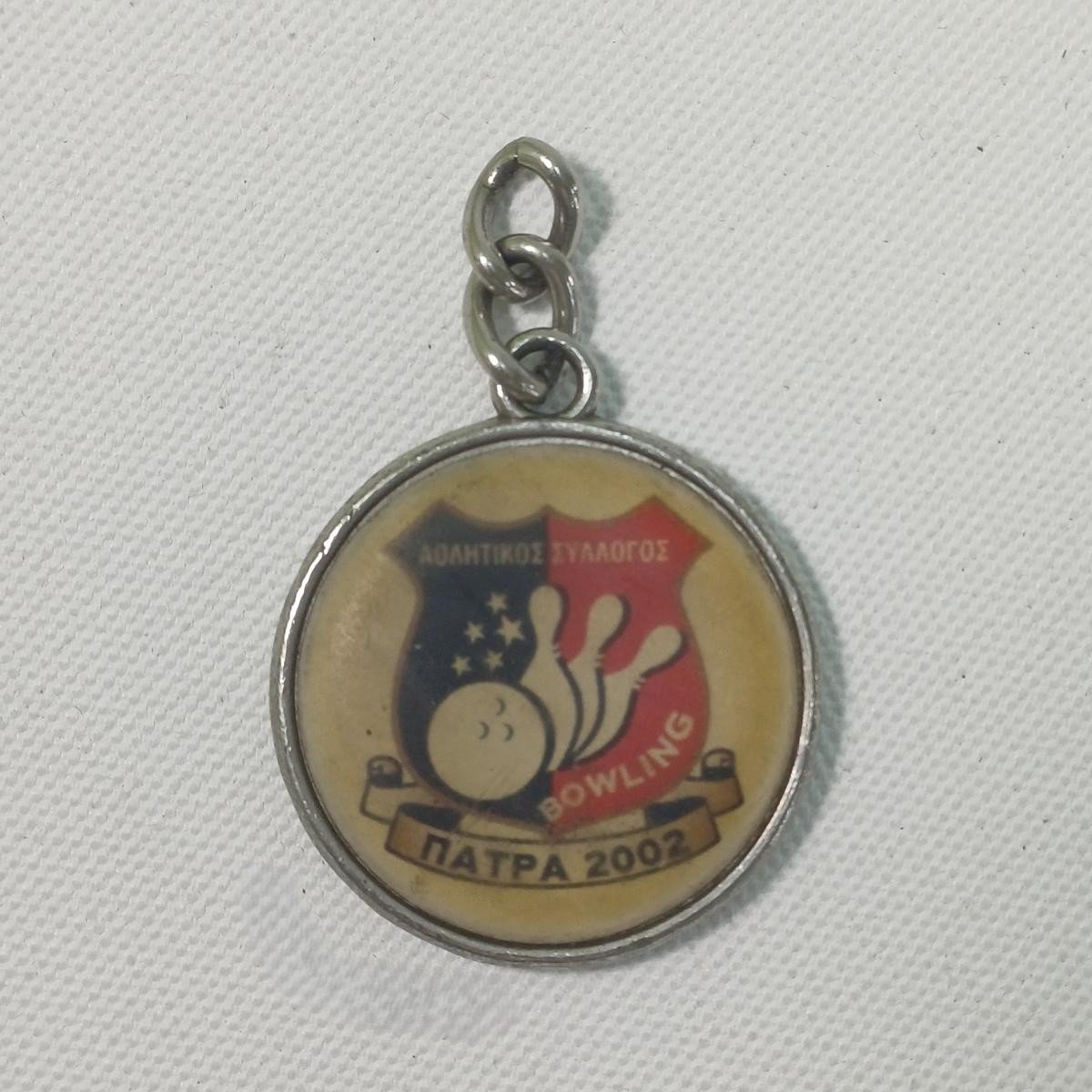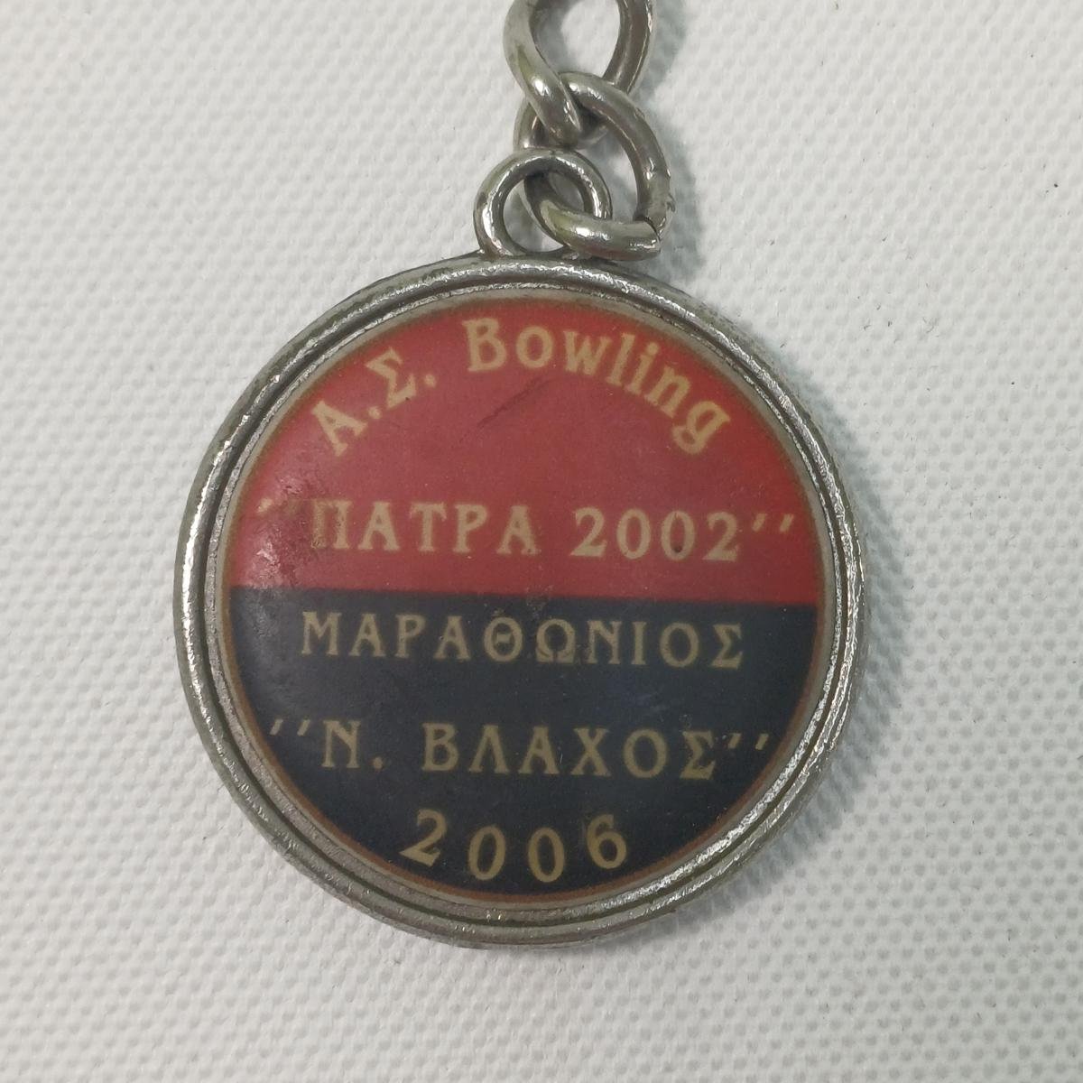 2) Μπρελόκ από τον Αθλητικό Σύλλογο Bowling Πάτρα 2002, που δημιουργήθηκε στα πλαίσια ενός μαραθωνίου Bowling με τον τίτλο “Ν. Βλάχος” το 2006. Λείπει ο κρίκος των κλειδιών και η διάμετρός του είναι 3,5 cm.