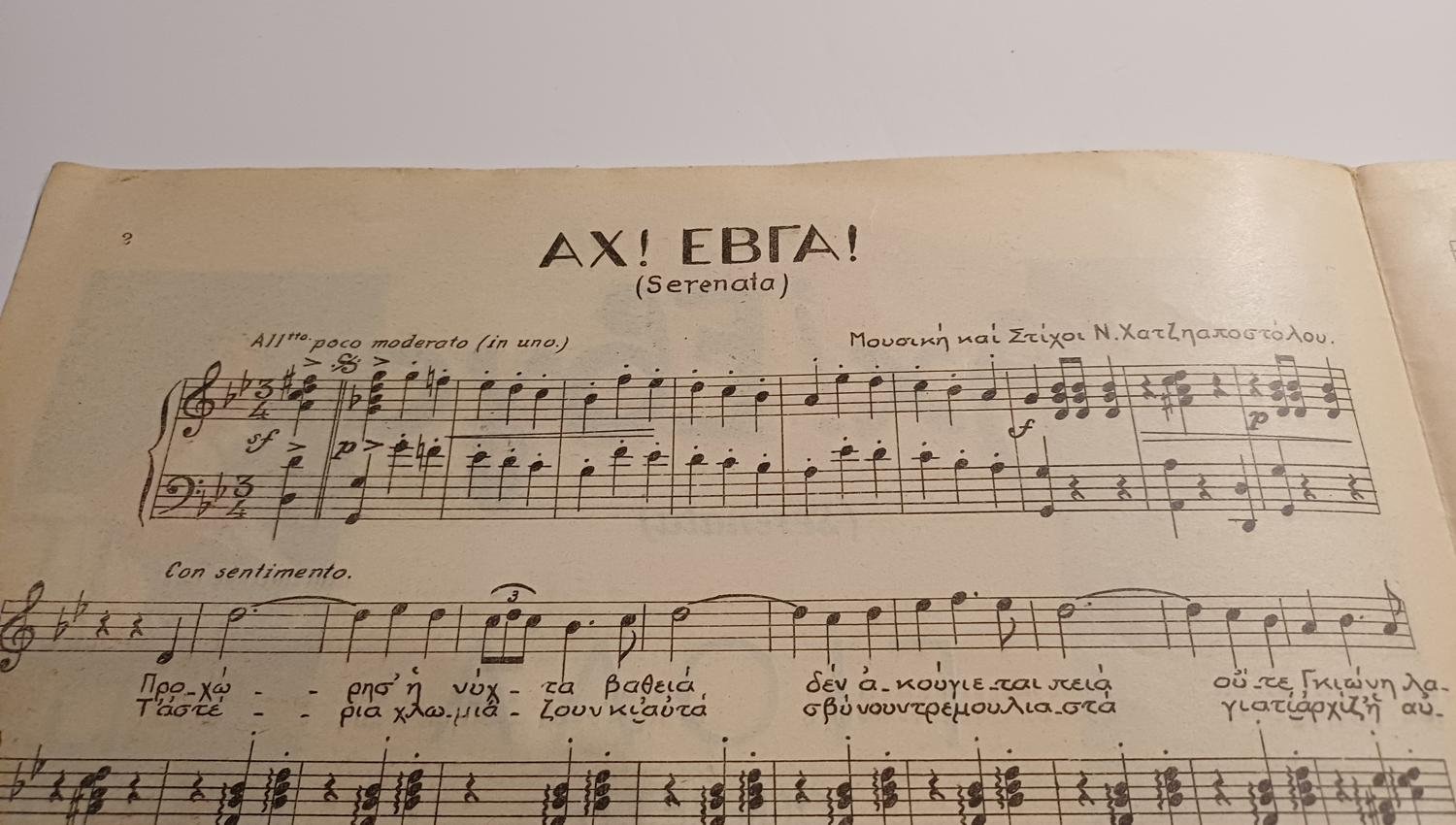 Vintage παρτιτούρα “Αχ! Έβγα!” Νίκος Χατζηαποστόλου (1929).