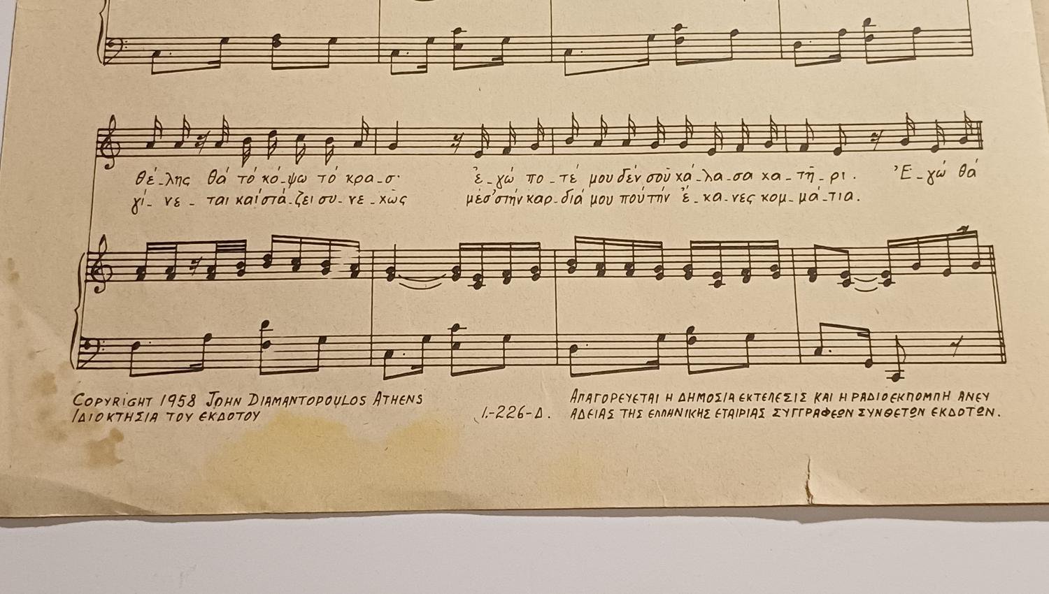 Vintage παρτιτούρα “Εγώ θα κόψω το κρασί” Α.Ν. Χατζηαποστόλου (1958).