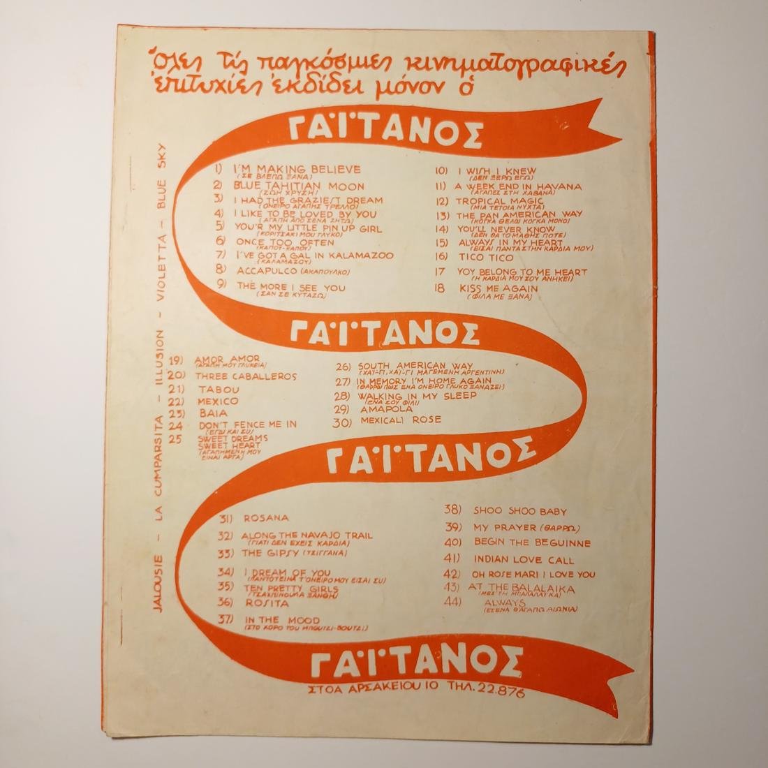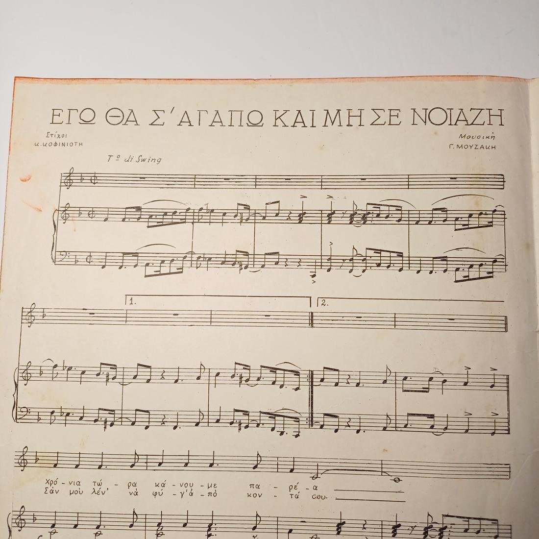 Vintage παρτιτούρα “Εγώ θα σ’ αγαπώ και μη σε νοιάζει” Γιώργος Μουζάκης (1948).
