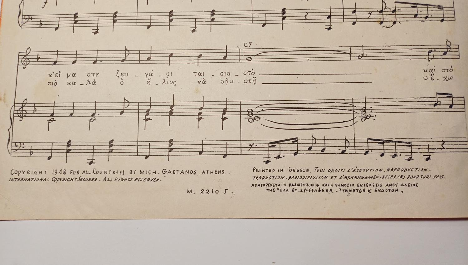 Vintage Παρτιτούρα “Εγώ θα σ’ αγαπώ και μη σε νοιάζει” Γιώργος Μουζάκης (1948)